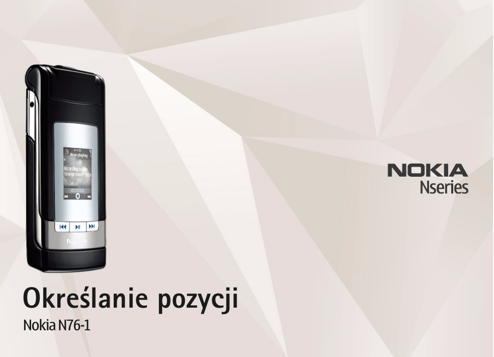 Okre¶lanie pozycji Nokia N76-1 © 2007 Nokia. Wszelkie prawa zastrze¿one. Nokia, Nokia Connecting People, Nseries i N76 s± znakami towarowymi lub zarejestrowanymi znakami towarowymi firmy Nokia Corporation. Inne nazwy produktów i firm wymienione w niniejszym dokumencie mog± byæ znakami towarowymi lub nazwami handlowymi ich w³a¶cicieli. Firma Nokia promuje politykê nieustannego rozwoju. Firma Nokia zastrzega sobie prawo do wprowadzania zmian i usprawnieñ we wszelkich produktach opisanych w tym dokumencie bez uprzedniego powiadomienia. W ¯ADNYM WYPADKU I W MAKSYMALNYM DOPUSZCZALNYM PRZEZ PRAWO ZAKRESIE FIRMA NOKIA ANI ¯ADEN Z JEJ LICENCJOBIORCÓW NIE PONOSI ODPOWIEDZIALNO¦CI ZA JAK¡KOLWIEK UTRATÊ DANYCH LUB ZYSKÓW ANI ZA ¯ADNE SZCZEGÓLNE, PRZYPADKOWE, WTÓRNE LUB PO¦REDNIE SZKODY POWSTA£E W DOWOLNY SPOSÓB. ZAWARTO¦Æ TEGO DOKUMENTU PRZEDSTAWIONA JEST „TAK JAK JEST”. NIE UDZIELA SIÊ JAKICHKOLWIEK GWARANCJI, ZARÓWNO WYRA¬NYCH JAK I DOROZUMIANYCH, W£¡CZAJ¡C W TO, LECZ NIE OGRANICZAJ¡C TEGO DO JAKICHKOLWIEK DOROZUMIANYCH GWARANCJI U¯YTECZNO¦CI HANDLOWEJ LUB PRZYDATNO¦CI DO OKRE¦LONEGO CELU, CHYBA ¯E TAKOWE WYMAGANE S¡ PRZEZ PRZEPISY PRAWA. FIRMA NOKIA ZASTRZEGA SOBIE PRAWO DO DOKONYWANIA ZMIAN W TYM DOKUMENCIE LUB WYCOFANIA GO W DOWOLNYM CZASIE BEZ UPRZEDNIEGO POWIADOMIENIA. Dostêpno¶æ poszczególnych produktów i aplikacji, a tak¿e i zwi±zanych z tymi produktami us³ug mo¿e siê ró¿niæ w zale¿no¶ci od regionu. Szczegó³y, w tym dostêpno¶æ opcji jêzykowych, nale¿y sprawdziæ ze sprzedawc± produktów Nokia. Niektóre operacje i funkcje zale¿± od karty SIM i/lub sieci, us³ug MMS b±d¼ zgodno¶ci urz±dzeñ i obs³ugiwanych formatów materia³ów. Za niektóre us³ugi pobierana jest osobna op³ata. Wiêcej wa¿nych informacji o swoim urz±dzeniu znajdziesz w instrukcji obs³ugi. WYDANIE 2. PL Naci¶nij i wybierz Narzêdzia > £±cza > Dane GPS lub Pkty orient.. atmosferyczne. Aby odbieraæ sygna³y GPS, odbiornik GPS musi znajdowaæ siê na zewn±trz budynku. Pkty orient. i Dane GPS mog± zale¿eæ od sieci (us³uga sieciowa) lub wymagaæ u¿ycia kompatybilnego odbiornika GPS. Aby uaktywniæ metodê okre¶lania pozycji, przewiñ do niej i wybierz Opcje > W³±cz. Terminal GPS odbiera z satelitów sygna³y radiowe o ma³ej mocy i mierzy czas, jaki zajmuje im dotarcie z orbity. Na podstawie tego czasu odbiornik GPS mo¿e obliczyæ swoj± pozycjê z dok³adno¶ci± do kilku metrów. Aby rozpocz±æ u¿ywanie kompatybilnego odbiornika GPS z funkcj± Bluetooth do okre¶lania pozycji, naci¶nij i wybierz Narzêdzia > Bluetooth. U¿yj funkcji Bluetooth, aby po³±czyæ siê z odbiornikiem GPS. Wiêcej informacji na temat u¿ywania funkcji Bluetooth znajdziesz w podrêczniku u¿ytkownika urz±dzenia Nokia N76. W systemie GPS wspó³rzêdne s± podawane w stopniach i stopniach dziesiêtnych zgodnie z miêdzynarodowym uk³adem wspó³rzêdnych WGS-84. System GPS (ang. Global Positioning System) jest udostêpniany przez rz±d USA, który ponosi ca³kowit± odpowiedzialno¶æ za dok³adno¶æ dzia³ania i utrzymywanie tego systemu. Na dok³adno¶æ ustalania pozycji mo¿e mieæ wp³yw zestrajanie satelitów GPS prowadzone przez rz±d USA. Dok³adno¶æ ta mo¿e ulec zmianie zgodnie z polityk± cywilnego udostêpniania GPS Amerykañskiego Departamentu Obrony i Federalnego Planu Radionawigacji. Na dok³adno¶æ ustalania pozycji mo¿e te¿ mieæ wp³yw niew³a¶ciwa geometria satelitów. Na mo¿liwo¶æ odbioru i jako¶æ sygna³ów GPS mog± mieæ wp³yw okoliczne zabudowania, przeszkody naturalne i warunki Okre¶lanie pozycji Okre¶lanie pozycji System GPS s³u¿y tylko jako pomoc w nawigacji. Nie powinno siê go stosowaæ do precyzyjnego okre¶lania lokalizacji. Oznacza to, ¿e przy ustalaniu pozycji lub nawigacji nigdy nie nale¿y polegaæ wy³±cznie na danych z odbiornika GPS. Informacje o sygna³ach z satelitów Je¶li odbiornik GPS nie mo¿e odebraæ sygna³u z satelity, nale¿y podj±æ nastêpuj±ce dzia³ania: • Je¶li znajdujesz siê w budynku, wyjd¼ na zewn±trz, aby poprawiæ warunki odbioru sygna³u. 3 Okre¶lanie pozycji • Je¶li znajdujesz siê na zewn±trz budynku, spróbuj znale¼æ szersz± przestrzeñ. • W przypadku z³ych warunków pogodowych moc sygna³u mo¿e siê znacznie obni¿yæ. • Nawi±zanie po³±czenia GPS mo¿e zaj±æ od kilku sekund do kilku minut. ¯±dania ustalenia pozycji Us³uga sieciowa mo¿e nades³aæ ¿±danie podania informacji o pozycji. Us³ugodawcy mog± dostarczaæ wiadomo¶ci dotycz±ce zagadnieñ lokalnych, np. informacje o pogodzie i warunkach drogowych, na podstawie pozycji urz±dzenia. Po odebraniu ¿±dania podania pozycji wy¶wietlona zostaje wiadomo¶æ przedstawiaj±ca us³ugê, która wysy³a ¿±danie. Wybierz Przyjmij, aby zezwoliæ na wys³anie informacji o pozycji, lub Odrzuæ, aby odrzuciæ ¿±danie. Punkty orientacyjne Naci¶nij i wybierz Narzêdzia > £±cza > Pkty orient.. Aplikacja Pkty orient. umo¿liwia zapisanie w urz±dzeniu informacji o po³o¿eniu okre¶lonych miejsc. Zapisane miejsca mo¿na podzieliæ na ró¿ne kategorie, np. biznes, oraz uzupe³niæ o pewne informacje, takie jak adres. 4 Z zapisanych punktów orientacyjnych mo¿na korzystaæ w kompatybilnych aplikacjach, np. Dane GPS. W systemie GPS wspó³rzêdne s± podawane w stopniach i stopniach dziesiêtnych zgodnie z miêdzynarodowym uk³adem wspó³rzêdnych WGS-84. Aby utworzyæ nowy punkt orientacyjny, wybierz Opcje > Nowy punkt orient. Je¶li urz±dzenie jest po³±czone z kompatybilnym odbiornikiem GPS, mo¿esz za¿±daæ okre¶lenia pozycji aktualnej lokalizacji. Wybierz Aktualna pozycja, aby otrzymaæ informacje o pozycji. Aby rêcznie wprowadziæ informacje o pozycji, wybierz Wprowad¼ rêcznie. Aby zmieniæ lub do³±czyæ informacje do zapisanego punktu orientacyjnego (np. adres ulicy), przewiñ do niego i naci¶nij . Przewiñ do odpowiedniego pola i wprowad¼ informacje. Mo¿na przypisywaæ punkty