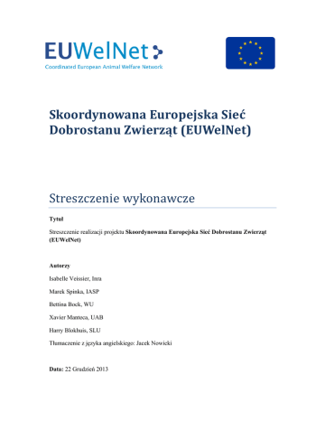 SkoordynowanaEuropejskaSieć DobrostanuZwierząt(EUWelNet) Streszczeniewykonawcze Tytuł Streszczenie realizacji projektu Skoordynowana Europejska Sieć Dobrostanu Zwierząt (EUWelNet) Autorzy Isabelle Veissier, Inra Marek Spinka, IASP Bettina Bock, WU Xavier Manteca, UAB Harry Blokhuis, SLU Tłumaczenie z języka angielskiego: Jacek Nowicki Data: 22 Grudzień 2013 Nabór wniosków SANCO 2012/10293 ProjektEUWelNetwskazujedrogęwkierunkuEuropejskiejSieci OśrodkówReferencyjnychds.DobrostanuZwierząt Kontekst Powstanie Europejskiego Centrum ochrony i dobrostanu zwierząt zostało po raz pierwszy zasugerowane we Wspólnotowym Planie Działań Dotyczącym Ochrony i Dobrostanu Zwierząt 2006-20101. Pomysł został opracowany w raporcie Komisji Europejskiej w 2009 r.2. Towarzyszyła temu ocena skutków3, w którym Komisja zaproponowała Europejską Sieć Ośrodków Referencyjnych ds. Ochrony i Dobrostanu Zwierząt (ENRC) w oparciu o istniejące zasoby. Parlament Europejski4 uznał, że europejska skoordynowana sieć dobrostanu zwierząt powinna zostać ustanowiona w ramach istniejących instytucji członkowskich UE lub Państw Członkowskich i że sieć powinna wyznaczyć jedną instytucję jako organ koordynujący. W 2013 r. Komisja przyjęła wniosek w sprawie kontroli urzędowych5, w którym określono, że "ośrodki referencyjne dobrostanu zwierząt" powinny wspierać działania Komisji i Państw Członkowskich w odniesieniu do stosowania przepisów określających wymagania w zakresie dobrostanu zwierząt. Do planowanych zadań tych ośrodków należeć będzie: − dostarczanie ekspertyz naukowych i technicznych (np. związanych ze szczegółowymi przepisami lub rozwojem i stosowaniem wskaźników dobrostanu zwierząt); − rozwój metod oceny i poprawy dobrostanu zwierząt wykorzystywanych do celów komercyjnych lub naukowych; − prowadzenie szkoleń dla krajowych pracowników naukowych należących do personelu pomocniczego, personelu odpowiednich organów i ekspertów z krajów trzecich; − upowszechnianie wyników badań i innowacji technicznych oraz współpraca z ośrodkami badawczymi UE w dziedzinach wchodzących w zakres ich misji. Zadania te są bardzo podobne do tych które zostały zaproponowane w strategii UE w zakresie dobrostanu zwierząt na lata 2012-20156. Jednak dokument ten szczegółowo nie opisuje i nie definiuje struktury koordynacyjnej dla ośrodków referencyjnych ds. dobrostanu zwierząt. W marcu 2010 r. Komisja opublikowała zaproszenie do składania wniosków (SANCO 2012/10293) w celu poznania możliwości sieci, której utworzenie miałoby mieć na celu 1 2 3 4 5 6 Community Action Plan on the Protection and Welfare of Animals 2006-2010 (COM(2006) 13) Options for animal welfare labelling and the establishment of a European Network of Reference Centres for the protection and welfare of animals. COM (2009) 584 final. Commission staff working document impact assessment report SEC(2009)1432. European Parliament on evaluation and assessment of the Animal Welfare Action Plan 2006-2010 (2009/2202(INI)). COM(2013) 265 final COM(2012) 6 final poprawę wdrażania prawodawstwa UE w zakresie dobrostanu zwierząt poprzez odpowiednie strategie wiedzy. Grant przyznano zespołowi EUWelNet, który prowadził projekt w roku 2013. CeleEUWelNet EUWelNet zbadał możliwości dotyczące zasobów skoordynowanej sieci i wyznaczył cztery podstawowe cele: 1. Ustanowić konsorcjum i koordynować badania pilotażowe; 2. Zidentyfikować tzw. czynniki limitujące/trudności w stosowaniu przepisów UE w zakresie dobrostanu zwierząt; 3. Opracować i przetestować strategie wiedzy; 4. Przeprowadzić nadrzędną analizę i sformułować zalecenia dotyczące wykonalności i warunków dla sieci europejskiej. Podejście EUWelNet stworzył konsorcjum szesnastu uniwersytetów i dziesięciu instytutów badawczych i technicznych z szesnastu Państw Członkowskich UE. Wszyscy partnerzy posiadali rozległą wiedzę naukową z odpowiednich i uzupełniających się dyscyplin (etologii, weterynarii, produkcji zwierzęcej, socjologii, itd.), doświadczenie w transferze wiedzy, edukacji, dialogu nauka-społeczeństwo i posiadali doświadczenie w skutecznej współpracy. Jako przykłady wybrano trzy akty prawne UE i skoncentrowano się na nich w projekcie: − Dyrektywa Rady 2008/120/WE z dnia 18 grudnia 2008 r. ustanawiająca minimalne normy ochrony świń („dyrektywa dotycząca świń”) − Dyrektywa Rady 2007/43/WE z dnia 28 czerwca 2007 r. w sprawie ustanowienia minimalnych zasad dotyczących ochrony kurcząt utrzymywanych z przeznaczeniem na produkcję mięsa („dyrektywa brojlerowa”) − Rozporządzenie Rady (WE) Nr 1099/2009 z dnia 24 września 2009 r. w sprawie ochrony zwierząt podczas ich uśmiercania („dyrektywa ubojowa”) Jeden z pakietów roboczych w planie pracy zaprojektowano w celu zidentyfikowania problemów i ograniczeń w stosowaniu tych aktów prawnych. Przeanalizowano organizację oraz strukturę procesu wdrażania legislacji w dziesięciu krajach, na których się skoncentrowano (Rumunia, Włochy, Szwecja, Słowacja, Wielka Brytania, Holandia, Polska, Hiszpania, Francja i Niemcy). Następnie przeanalizowano krajowe i europejskie raporty kontrolne aby poprawić rozumienie stopnia implementacji i zgodności stosowania przepisów. Kolejnym krokiem było przeprowadzenie wywiadów z reprezentantami odpowiednich przedstawicieli sektora publicznego i prywatnego w sześciu krajach (Wielka Brytania, Holandia, Hiszpania, Włochy, Polska i Rumunia). Rozmowy koncentrowały się na działaniach podjętych w celu ułatwienia wdrażania i do przezwyciężenia trudności, biorąc pod uwagę w szczególności istotność naprawczych strategii wiedzy i roli, jaką w przyszłości może odegrać sieć. W równolegle realizowanym pakiecie roboczym, zaplanowano i przetestowano różne typy strategii wiedzy w odniesieniu do w/w trzech aktów prawnych. Należą do nich oparte o sieć narzędzia 