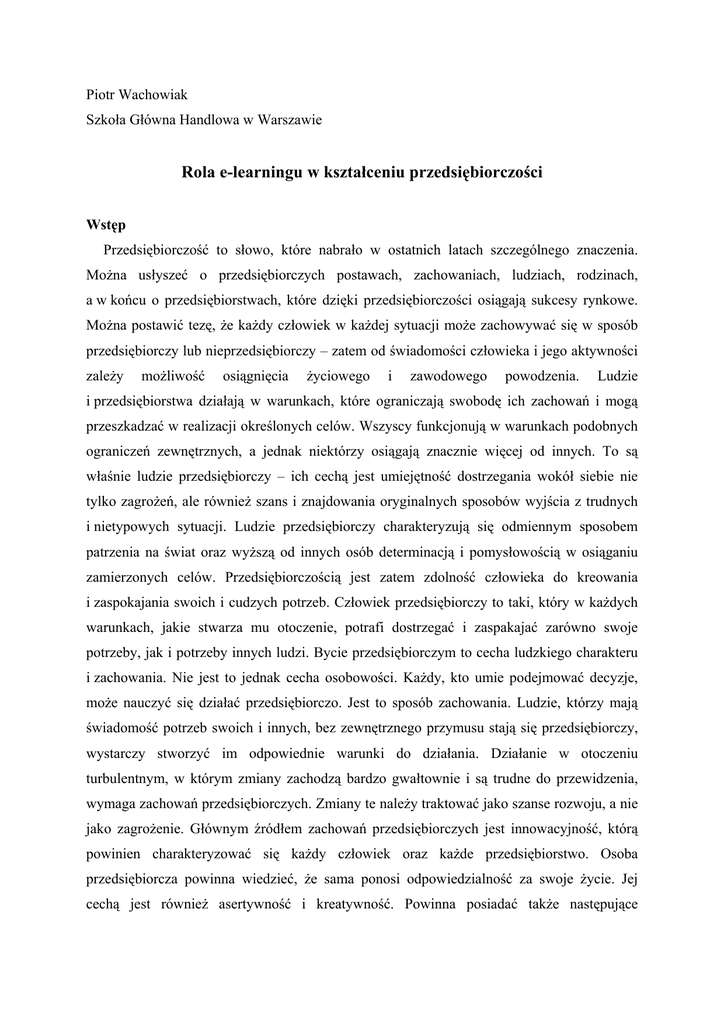 Rola e-learningu w kształceniu przedsiębiorczości - E