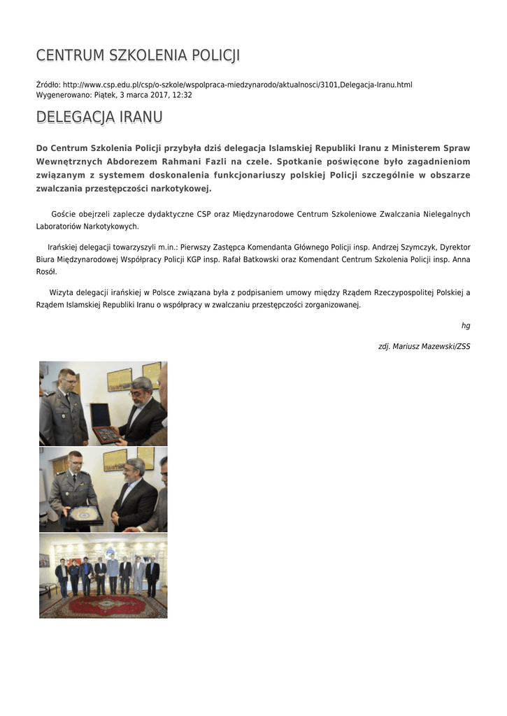 CENTRUM SZKOLENIA POLICJI DELEGACJA IRANU