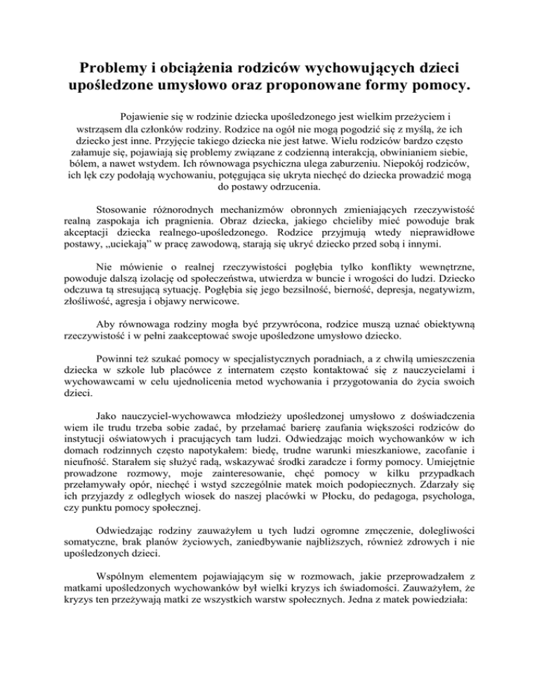 Problemy i obciążenia rodziców wychowujących dzieci upośledzone