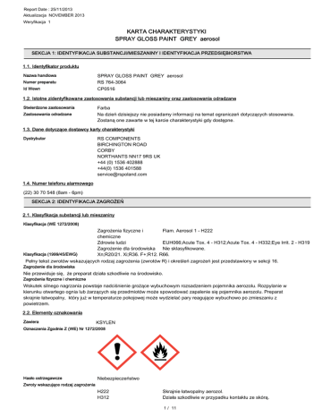 KARTA CHARAKTERYSTYKI SPRAY GLOSS PAINT GREY aerosol