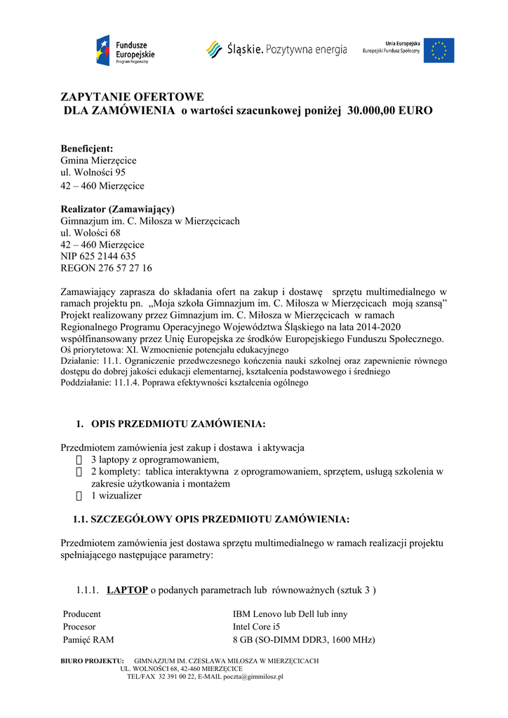 Zapytanie ofertowe 1 - Gimnazjum w Mierzęcicach