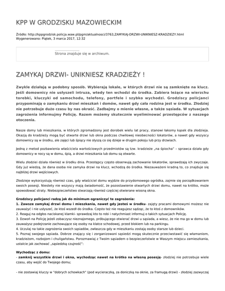 KPP W GRODZISKU MAZOWIECKIM ZAMYKAJ DRZWI