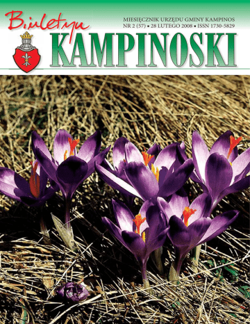 Biuletyn MIESIĘCZNIK URZĘDU GMINY KAMPINOS NR 2 (57) ■ 28 LUTEGO 2008 ■ ISSN 1730-5829 Uchwa³y Rady Gminy OG£OSZENIE Na XVI Sesji Rady Gminy w dniu 28 stycznia br. zostały podjęte następujące uchwały: Uchwała Nr XVI/71/08 w sprawie zaciągnięcia długoterminowej pożyczki z Wojewódzkiego Funduszu Ochrony Środowiska i Gospodarki Wodnej w Warszawie. Uchwała w tej sprawie została podjęta w ubiegłym roku, jednak pożyczka nie była zaciągnięta, gdyż nie zostało wykonane zadanie inwestycyjne. Obecnie jesteśmy po przetargu, wyłoniony został wykonawca (będzie wykonywany etap I zadania), ale rozpoczął się kolejny rok i trzeba zadanie ponownie wprowadzić do budżetu. Cała procedura powinna być powtórzona, dlatego w tym roku należy podjąć kolejną uchwałę, jednak obecnie zmniejszy się kwota pożyczki (poprzednio było 700.000 zł, obecnie – 460.000 zł). Uchwała Nr XVI/72/08 w sprawie zmiany budżetu gminy na 2008 r. Do budżetu gminy wprowadzono niezakończone zadanie z 2007 r. dotyczące wymiany sieci wodociągowej II etap – Kampinos – Wiejca. Uchwała Nr XVI/73/08 w sprawie zatwierdzenia Gminnego Programu Profilaktyki i Rozwiązywania Problemów Alkoholowych na 2008 r. Program dotyczy profilaktyki wśród młodzieży oraz rozwiązywania problemów osób dorosłych. Skład Komisji ds. Rozwiązywania Problemów Alkoholowych oraz wynagrodzenia członków Komisji nie zmieniły się. Uchwała Nr XVI/74/08 w sprawie ustalenia najniższego wynagrodzenia w I kategorii zaszeregowania oraz zaakceptowania wartości jednego punktu w złotych, stanowiącego podstawę określenia miesięcznego wynagrodzenia stawek zaszeregowania zasadniczego dla pracowników administracji i obsługi Zespołu Szkolno – Przedszkolnego z Oddziałami Integracyjnymi w Kampinosie. Uchwała Nr XVI/75/08 w sprawie uchylenia Uchwały Nr XVIII/60/07 Rady Gminy w Kampinosie z dnia 29 października 2007 r. odnośnie zatwierdzenia zmian w Statucie Związku Międzygminnego „Kampinos” i Uchwała Nr XVI/76/08 w sprawie zmian w Statucie Związku Międzygminnego „Kampinos” dotyczyły ujednolicenia zapisów w Statucie Związku. Na XVII Sesji Rady Gminy w dniu 18 lutego br. zostały podjęte następujące uchwały: Uchwała Nr XVII/77/08 w sprawie wyrażenia woli przystąpienia do Lokalnej Organizacji Turystycznej Trzech Rzek, działającej w formie stowarzyszenia (więcej na ten temat w artykule Turystyczny Kampinos). Uchwała Nr XVII/78/08 w sprawie zatwierdzenia projektu aneksu do Porozumienia w sprawie współfinansowania budowy siedziby Posterunku Policji w Kampinosie. Zgodnie z Porozumieniem Policja miała obciążyć gminę notą księgową na 200 tys. zł. Nie uczyniła tego jednak, dlatego zmieniono Porozumienie tak, aby mogło nastąpić to w tym roku. Uchwała Nr XVII/79/08 w sprawie zmiany budżetu gminy na 2008 rok. Do wydatków budżetu gminy wprowadzono dotację przeznaczoną na budowę siedziby Posterunku Policji w Kampinosie w wys. 200.000 zł, zgodnie z ww. aneksem do Porozumienia w sprawie współfinansowania budowy. Źródłem pokrycia będą planowane przychody – wolne środki za rok 2007. Dokonano również zmian w planie wydatków oraz w planie przychodów: zmniejszyły się przychody z tytułu nadwyżki w wys. 158.820 zł a zwiększyły przychody z tytułu wolnych środków za rok 2007. Po dokonanych zmianach planowane dochody gminy wynoszą 10.558.291 zł, a planowane wydatki – 13.270.992,77 zł (przychody 3.084.799,77 zł i rozchody 372.098 zł). Uchwała Nr XVII/80/08 w sprawie powołania doraźnej Komisji Statutowej do opracowania zmian w Statucie Gminy. Uchwała Nr XVII/81/08 w sprawie ustalenia wysokości najniższego wynagrodzenia zasadniczego i wartości jednego punktu w złotych dla pracowników administracji i obsługi Zespołu Szkolno-Przedszkolnego z Oddziałami Integracyjnymi w Kampinosie. Najniższe wynagrodzenie zasadnicze w I kategorii zaszeregowania w tabeli miesięcznych stawek wynagrodzenia zasadniczego pracowników administracji i obsługi Zespołu Szkolno-Przedszkolnego ustalono na kwotę 800,00 zł. Wartość jednego punktu stanowiącego podstawę naliczenia miesięcznych stawek wynagrodzenia zasadniczego ustalono na poziomie 7,00 zł. Tym samym straciła moc Uchwała Nr XVI/74/08 z dnia 28 stycznia 2008 r. 2 Grupa DSV to jedna z wiodących firm z branży TSL (transport, spedycja, logistyka) na świecie. W jej skład w Polsce wchodzą spółki DSV Road, DSV Air & Sea, DSV Solutions. W Polsce Grupa DSV zatrudnia ok. 700 pracowników. Spółka DSV Solutions w związku z rozwojem i przeniesieniem Magazynu z Teresina do nowej lokalizacji w Gnatowicach Starych poszukuje: KANDYDATÓW DO PRACY W MAGAZYNIE Opis stanowiska: • kontrola i transport wewnętrzny towarów w magazynie • rozładunek i załadunek towarów • szykowanie – kompletacja wysyłek Wymagania: • systematyczność, uczciwość, dokładność i terminowość w wykonywaniu powierzonych obowiązków • dobra organizacja pracy • umiejętność pracy w zespole • mile widziane uprawnienia do kierowania środkami transportu wewnętrznego – wózki spalinowe i elektryczne Oferujemy: • ciekawą pracę w młodym i dynamicznym zespole • możliwość wdrażania nowych pomysłów w ramach obowiązujących procedur • możliwość rozwoju zawodowego Zainteresowanych Kandydatów prosimy o zgłoszenie osobiste do działu kadr, nadsyłanie CV na adres: 96-515 Teresin, Al. XX-lecia 23A lub pozostawienie aplikacji w sekretariacie Wójta Gminy Kampinos Prosimy o dopisanie następującej klauzuli „Wyrażam zgodę na przetwarzanie moich danych osobowych dla potrzeb niezbędnych dla realizacji procesu rekrutacji (zgodnie z ustawą z dn. 29.08.97 roku o ochronie danych osobowych Dz.U. Nr 133 poz. 883)” ZAWIADOMIENIE Dyrektor Zespołu Szkolno-Przedszkolnego z Oddziałami Integracyjnymi w Kampinosie zawiadamia, że od 10 marca do 11 kwietnia 2008 r. w godz. 8.00 – 15.30 odbywają