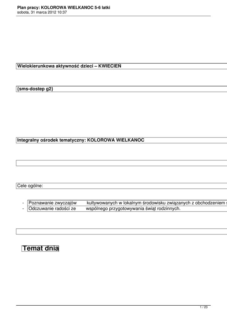 Plan pracy: KOLOROWA WIELKANOC 5-6 latki