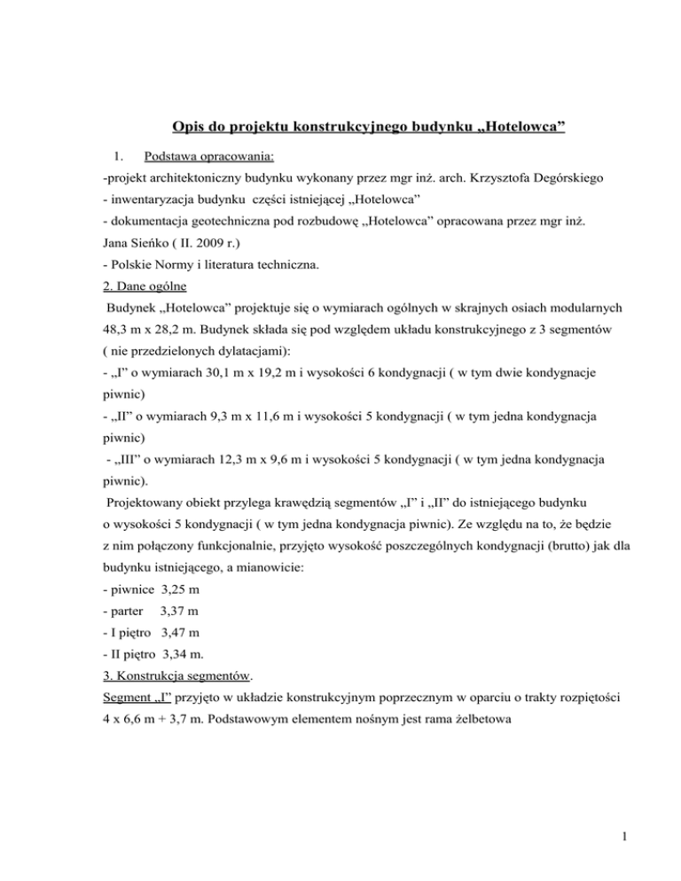 Opis do projektu konstrukcyjnego budynku „Hotelowca”