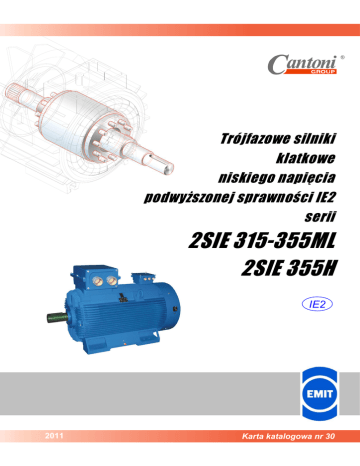 Trójfazowe silniki klatkowe niskiego napięcia podwyższonej sprawności IE2 serii 2SIE 315-355ML 2SIE 355H IE2 2011 Karta katalogowa nr 30 Trójfazowe silniki niskiego napięcia podwyższonej sprawności IE2 NOWE KLASY SPRAWNOŚCI SILNIKÓW ELEKTRYCZNYCH (IE = INTERNATIONAL EFFICIENCY) W związku z międzynarodową dyskusją o sprawności energetycznej, stworzono obowiązujący na całym świecie zharmonizowany system klasyfikacji sprawności energetycznej dla niskonapięciowych trójfazowych silników asynchronicznych. Przez wiele lat niskonapięciowe silniki trójfazowe w Unii Europejskiej sprzedawane były w trzech klasach sprawności EFF3, EFF2 i EFF1. Oprócz tego, w wielu krajach na całym świecie wprowadzono i dobrze sprawdziło się w nich wiele różnych systemów klasyfikacji sprawności. Właśnie z tego powodu Międzynarodowa Komisja Elektrotechniczna (International Electrotechnical Commission – IEC) opracowała i opublikowała normę dotyczącą sprawności energetycznej, która zastępuje wszystkie poprzednie wydania krajowe. Równolegle Komisja IEC opracowała i wydała nową normę dotyczącą wyznaczania sprawności silników. Nowa norma IEC 60034-30 określa i harmonizuje na całym świecie klasy sprawności IE1, IE2 i IE3 dla niskonapięciowych silników trójfazowych w zakresie mocy od 0,75 kW do 375 kW (2p=2, 4, 6): IE1 = standardowa sprawność (standard) IE2 = podwyższona sprawność (high efficiency) IE3 = najwyższy poziom sprawności (premium) Od tej pory silniki można oferować i sprzedawać wykorzystując nowe klasy IE1, IE2 i IE3. W takim przypadku sprawność należy wyznaczać zgodnie z nowymi wymaganiami podanymi w normie IEC 60034-2-1. Wartości minimalnej wartości sprawności silników dla poszczególnych klas sprawności przedstawiono w tabeli oraz na wykresie poniżej. IE3 2p=4 100 95 90 85 80 75 20 0 37 5 13 2 16 0 90 11 0 55 75 37 45 22 30 11 15 18 ,5 5, 5 7, 5 3 4 70 1, 5 82,5 84,1 85,3 86,7 87,7 88,6 89,6 90,4 91,4 92,1 92,6 93 93,6 93,9 94,2 94,6 95 95,2 95,4 95,6 95,8 96 96 2, 2 72,1 75 77,2 79,7 81,5 83,1 84,7 86 87,6 88,7 89,3 89,9 90,7 91,2 91,7 92,1 92,7 93 93,3 93,5 93,8 94 94 IE2 2p=4 79,6 81,4 82,8 84,3 85,5 86,6 87,7 88,7 89,8 90,6 91,2 91,6 92,3 92,7 93,1 93,5 94 94,2 94,5 94,7 94,9 95,1 95,1 Sprawność [%] IE1 0, 75 1, 1 Moc kW 0,75 1,1 1,5 2,2 3 4 5,5 7,5 11 15 18,5 22 30 37 45 55 75 90 110 132 160 200 375 Moc [kW] IE1 IE2 IE3 System klas sprawności określony w normie IEC 60034-30 obowiązuje dla indukcyjnych klatkowych silników niskonapięciowych, trójfazowych, o następujących specyfikacjach: • Napięcie znamionowe do 1,000 V • Wyjściowa moc znamionowa pomiędzy 0,75 kW a 375 kW • 2, 4 lub 6 biegunów • Wartość nominalna określona na podstawie pracy ciągłej (S1) lub pracy okresowo przerywanej (S3) o współczynniku cyklicznego czasu trwania równym 80% lub większym • Wartość nominalna określona dla warunków pracy zgodnie z normą IEC 60034-1 (temperatura, wysokość geograficzna instalacja, itp.) Norma ta obejmuje również silniki z kołnierzami, łapami i/lub wałami o wymiarach mechanicznych różnych od IEC 60072-1. Prowadzimy intensywne prace rozwojowe mające na celu sukcesywne podwyższanie wartości sprawności oferowanych silników elektrycznych. Weryfikacja zakładanych parametrów silników przeprowadzona jest w oparciu o najnowsze normy IEC 60034-2-1 oraz IEC 60034-30. 1/8 Trójfazowe silniki niskiego napięcia podwyższonej sprawności IE2 CHARAKTERYSTYKA TECHNICZNA Silniki niskonapięciowe o podwyższonej sprawności serii 2SIE produkcji EMIT obejmują zakres mocy od 160kW do 375kW i wielkości mechaniczne od 315 do 355 mm. Typ / seria 2SIE 315-355 ML Dane techniczne 2SIE 355 H wg tabeli danych technicznych Rodzaj pracy ciągła S1 400/690V (∆/Y) Napięcie znamionowe Klasa izolacji F Temperatura otoczenia -15 C° ÷ +40 C° Wysokość ustawienia do 1000 m n.p.m. IP55 Stopień ochrony IC411 – wg PN-EN 60034-6 System chłodzenia Forma wykonania mechanicznego Sposób rozruchu IM1001 (B3), IM2001 (B35) lub IM 3011 (V1) – wg PN-EN 60034-7 bezpośredni z sieci , przełącznik Y/∆ lub z przemiennika Liczba zacisków stojana 6 dla B3, B35 u góry (obracalna 4×90°), Skrzynka zaciskowa Łożyska Kierunek wirowania dla V1 z boku (obracalna 2×180°) toczne z możliwością dosmarowania w czasie pracy (typy łożysk wg tabeli 1) Zabezpieczenie termiczne uzwojeń Zabezpieczenie termiczne łożysk Grzałki antykondensacyjne Przystosowanie do zasilania z przemiennika częstotliwości Malowanie końcowe Materiał kadłuba Zabezpieczenie antykorozyjne Wykonanie wg normy podstawowej jeden (wg zamówienia) dla 2p=2 i 4 dowolny dla pozostałych dowolny Poziom natężenia dźwięku Poziom drgań – wg PN-EN 60034-5 zgodny z normą PN-EN 60034-9 N (≤ 2,8 mm/s) wg normy PN-EN 60034-14 3×PTC 6×Pt100 (2 szt/fazę) na życzenie 2×Pt100 (1 szt/węzeł łożyskowy) na życzenie na życzenie kolor niebieski - RAL 5010 odlew żeliwny dla klimatu umiarkowanego (na życzenie - dla klimatu morskiego; tropikalnego suchego TA; tropikalnego wilgotnego TH) PN-EN 60034-1 2/8 Trójfazowe silniki niskiego napięcia podwyższonej sprawności IE2 ZASTOSOWANIE I WARUNKI PRACY Silniki serii „2SIE” mają zastosowanie ogólnoprzemysłowe. Są używane do napędu różnych maszyn i urządzeń, których praca ma charakter ciągły bez częstych rozruchów i nawrotów. Ze względu na stopień ochrony mogą pracować w warunkach, gdy otaczające powietrze zawiera zanieczyszczenia. 3 Zapylenie otoczenia nie powinno być większe od 10 mg/m . Nie mogą to być jednak zanieczyszczenia agresywne, takie jak opary kwasów i ługów. Atmosfera nie może również zawierać mieszanek wybuchowych. Przy pracy na wolnym powietrzu zaleca się stosować zadaszenie zabezpieczające przed bezpośrednim działaniem opadów deszczu lub śniegu oraz promieni słonecznych. Przy zasilaniu z przemienników częstotliwości dopuszcza si