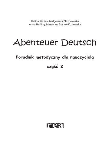 Halina Stasiak, Małgorzata Błaszkowska Anna Herling, Marzanna Stanek-Kozłowska Abenteuer Deutsch Poradnik metodyczny dla nauczyciela część 2 © Wydawnictwo REA s.j., Warszawa 2005 ISBN 83-7141-643-1 Wydawnictwo REA s.j. 01-217 Warszawa, ul. Kolejowa 9/11 tel./fax: 0226322115, 0226319423 www.rea-sj.pl e-mail: [email protected] Wykorzystanie tekstów i ilustracji, również fragmentaryczne, bez zezwolenia wydawnictwa jest zabronione. Dotyczy to również powielania, filmowania i opracowania w systemach elektronicznych. Spis treści Wstęp . . . . . . . . . . . . . . . . . . . . . . . . . . . . . . . . . . . . . . . . . . . . . . . . . . . . . . . . . . . . . . . . . . . . . . . . . . . . . . . . . . . . . . 5 Scenariusze wybranych lekcji . . . . . . . . . . . . . . . . . . . . . . . . . . . . . . . . . . . . . . . . . . . . . . . . . . . . . . . . . . . . . . . . . . 7 Nauczycielski plan wynikowy . . . . . . . . . . . . . . . . . . . . . . . . . . . . . . . . . . . . . . . . . . . . . . . . . . . . . . . . . . . . . . . . . 14 Rozwiązania do zadań z podręcznika i zeszytu ćwiczeń . . . . . . . . . . . . . . . . . . . . . . . . . . . . . . . . . . . . . . . . . . . 19 Testy dla uczniów . . . . . . . . . . . . . . . . . . . . . . . . . . . . . . . . . . . . . . . . . . . . . . . . . . . . . . . . . . . . . . . . . . . . . . . . . . . 35 Poprawne rozwiązania do testów sprawdzających . . . . . . . . . . . . . . . . . . . . . . . . . . . . . . . . . . . . . . . . . . . . . . . . 55 Transkrypcja tekstów do podręcznika i zeszytu ćwiczeń nagranych na płycie CD . . . . . . . . . . . . . . . . . . . . . 57 Certyfikaty KID 1 i KID 2 . . . . . . . . . . . . . . . . . . . . . . . . . . . . . . . . . . . . . . . . . . . . . . . . . . . . . . . . . . . . . . . . . . . . 76 Wstęp Drogie Koleżanki i drodzy Koledzy! Przebrnęliście Państwo wraz z Waszymi uczniami przez pierwszą część kursu „Abenteuer Deutsch”. Mamy nadzieję, że nauka okazała się przyjemna i efektywna, że nowa formuła podręcznika języka niemieckiego gwarantuje Wam komfort pracy. W drugiej części przygód z językiem niemieckim („Abenteuer Deutsch”) realizujemy koncepcję, którą znacie Państwo z części pierwszej: lekcje są „przygodami” podzielonymi – każda z nich – na osiem stacji, a stacje poświęcone są rozwijaniu i utrwalaniu poszczególnych sprawności i umiejętności. Wszystkie przygody skoncentrowane są wokół problemów interesujących młodszą młodzież, motywując ją do podejmowania dyskusji nie tylko po to, by złożyć poprawne zdanie w języku niemieckim, ale przede wszystkim po to, by wyrazić pogląd na określony temat. I to właśnie będzie sukcesem ich i Państwa, no i naszym – Autorek tego opracowania. Część druga Poradnika zawiera propozycje rozwiązań dydaktycznych, szereg porad i wskazówek, jak skorzystać z materiałów pomocniczych. Nic nie jest receptą na najlepszą metodę nauczania z podręcznikiem „Abenteuer Deutsch”. Proponujemy uwagi i odpowiedzi, z których możecie Państwo skorzystać. Możecie również wybrać te formy pracy i techniki dydaktyczne, które Waszym uczniom najbardziej odpowiadają. Najważniejsze jest osiągnięcie celu: podtrzymanie w uczniach ochoty do uczenia się języka niemieckiego, powiększenie ich sprawności językowej we wszystkich obszarach i zapewnienie sukcesu w nauce, wyrażanego triumfalnym: „Ich kann...!” Tego Państwu i sobie życzą Autorki Wrzesień 2005 Scenariusze wybranych lekcji Aby pokazać Wam, jak zbudowany jest podręcznik i jaką strukturę mają poszczególne lekcje, przedstawiamy poniżej scenariusze do wszystkich lekcji z Abenteuer 1. Abenteuer 1 Ich und du im Spiegel Station 1 Spielen & Knobeln Lekcje Spielen & Knobeln, otwierające poszczególne Abenteuer pomyślane są jako wprowadzenie do danego rozdziału, powtórka słownictwa znanego z serii KängooKängoo Deutsch oraz jego nieznaczne rozszerzenie przygotowujące do pracy w rozdziale. Spielen & Knobeln oparte są na konwencji zabawowej i tak też powinny być traktowane zarówno przez nauczyciela jak i uczniów. Ćwiczenia mogą być wykonywane w dowolnej kolejności. Słownictwo do powtórzenia: części garderoby i ich cechy, kolory. Station 2 Von Pickeln und gebrochenen Herzen (1) Bildergeschichte Cele: rozumienie tekstu pisanego wspieranego ilustracjami, opis wyglądu zewnętrznego wybranych osób. Słownictwo do aktywnego opanowania: słownictwo związane z opisem wyglądu zewnętrznego wybranych osób (kolor oczu, włosy, fryzura, nos, uszy, usta itd. wraz z odpowiednimi przymiotnikami). Problemy gramatyczne: odmiana przymiotnika z rzeczownikiem po rodzajniku nieokreślonym w liczbie pojedynczej oraz bez rodzajnika w liczbie mnogiej (mianownik i biernik). Prezentacja Tekst historyjki obrazkowej część 1 – uczniowie czytają tekst w swoich książkach, a następnie odczytują go z podziałem na role. Uczniowie spekulują na temat ciągu dalszego historyjki.* Nauczyciel może zaproponować uczniom nauczenie się na pamięć ról z historyjki obrazkowej i odegranie jej dla przypomnienia przed częścią drugą historii w Station 5.* Faza ćwiczeń Zadanie 1 w podręczniku – uczniowie mają za zadanie podkreślić odpowiednio imiona w podanym zdaniu Zadanie 2 w podręczniku – uczniowie wybierają odpowiednie cechy opisujące Phillipa i Jana – bohaterów historyjki obrazkowej Ćwiczenie 1 w książce ćwiczeń – uczniowie uzupełniają brakujące informacje w metryczkach dotyczących Phillipa i Jana oraz wypełniają swoją własną metryczkę. Ćwiczenie 2 w książce ćwiczeń – uczniowie przyporządkowują grupy przymiotników do odpowiednich części ciała. Ćwiczenie 3 w książce ćwiczeń – uczniowie zaznaczają słówka, których nie można użyć, określając daną część ciała. Ćwiczenie 4 w książce ćwiczeń – uczniowie skreślają te słówka, które nie charakteryzują wyglądu zewnę