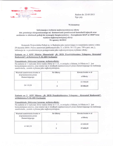 Informacja o wyborze najkorzystniejszej oferty