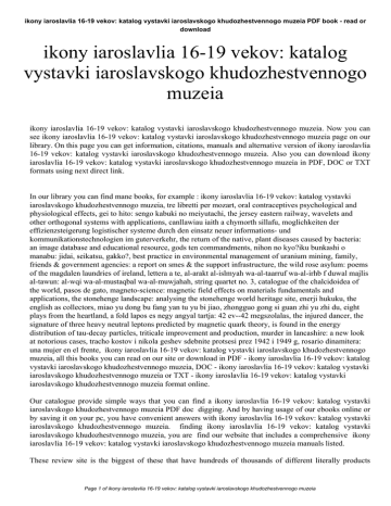 ikony iaroslavlia 16-19 vekov: katalog vystavki iaroslavskogo khudozhestvennogo muzeia PDF book - read or download ikony iaroslavlia 16-19 vekov: katalog vystavki iaroslavskogo khudozhestvennogo muzeia ikony iaroslavlia 16-19 vekov: katalog vystavki iaroslavskogo khudozhestvennogo muzeia. Now you can see ikony iaroslavlia 16-19 vekov: katalog vystavki iaroslavskogo khudozhestvennogo muzeia page on our library. On this page you can get information, citations, manuals and alternative version of ikony iaroslavlia 16-19 vekov: katalog vystavki iaroslavskogo khudozhestvennogo muzeia. Also you can download ikony iaroslavlia 16-19 vekov: katalog vystavki iaroslavskogo khudozhestvennogo muzeia in PDF, DOC or TXT formats using next direct link. In our library you can find mane books, for example : ikony iaroslavlia 16-19 vekov: katalog vystavki iaroslavskogo khudozhestvennogo muzeia, tre libretti per mozart, oral contraceptives psychological and physiological effects, gei to hito: sengo kabuki no meiyutachi, the jersey eastern railway, wavelets and other orthogonal systems with applications, canllawiau iaith a chymorth sillafu, moglichkeiten der effizienzsteigerung logistischer systeme durch den einsatz neuer informations- und kommunikationstechnologien im guterverkehr, the return of the native, plant diseases caused by bacteria: an image database and educational resource, gods ten commandments, nihon no kyo?iku bunkashi o manabu: jidai, seikatsu, gakko?, best practice in environmental management of uranium mining, family, friends & government agencies: a report on smes & the support infrastructure, the wild rose asylum: poems of the magdalen laundries of ireland, lettera a te, al-arakt al-islmyah wa-al-taarruf wa-al-irhb f duwal majlis al-tawun: al-wqi wa-al-mustaqbal wa-al-muwjahah, string quartet no. 3, catalogue of the chalcidoidea of the world, pasos de gato, magneto-science: magnetic field effects on materials fundamentals and applications, the stonehenge landscape: analysing the stonehenge world heritage site, enerji hukuku, the english as collectors, miao yu dong bu fang yan tu yu bi jiao, zhongguo gong si guan zhi yu zhi du, eight plays from the heartland, a fold lapos es negy angyal tartja: 42 ev--42 megszolalas, the injured dancer, the signature of three heavy neutral leptons predicted by magnetic quark theory, is found in the energy distribution of tau-decay particles, triticale improvement and production, murder in lancashire: a new look at notorious cases, tracho kostov i nikola geshev sdebnite protsesi prez 1942 i 1949 g, rosario dinamitera: una mujer en el frente, ikony iaroslavlia 16-19 vekov: katalog vystavki iaroslavskogo khudozhestvennogo muzeia, all this books you can read on our site or download in PDF - ikony iaroslavlia 16-19 vekov: katalog vystavki iaroslavskogo khudozhestvennogo muzeia, DOC - ikony iaroslavlia 16-19 vekov: katalog vystavki iaroslavskogo khudozhestvennogo muzeia or TXT - ikony iaroslavlia 16-19 vekov: katalog vystavki iaroslavskogo khudozhestvennogo muzeia format online. Our catalogue provide simple ways that you can find a ikony iaroslavlia 16-19 vekov: katalog vystavki iaroslavskogo khudozhestvennogo muzeia PDF doc digging. And by having usage of our ebooks online or by saving it on your pc, you have convenient answers with ikony iaroslavlia 16-19 vekov: katalog vystavki iaroslavskogo khudozhestvennogo muzeia. finding ikony iaroslavlia 16-19 vekov: katalog vystavki iaroslavskogo khudozhestvennogo muzeia, you are find our website that includes a comprehensive ikony iaroslavlia 16-19 vekov: katalog vystavki iaroslavskogo khudozhestvennogo muzeia manuals listed. These review site is the biggest of these that have hundreds of thousands of different literally products Page 1 of ikony iaroslavlia 16-19 vekov: katalog vystavki iaroslavskogo khudozhestvennogo muzeia ikony iaroslavlia 16-19 vekov: katalog vystavki iaroslavskogo khudozhestvennogo muzeia PDF book - read or download represented. So as to there are particular sites catered to different product also categories or types, brands or niches related to ikony iaroslavlia 16-19 vekov: katalog vystavki iaroslavskogo khudozhestvennogo muzeia. So depending on just what you are searching, you'll be able to choose ebooks ikony iaroslavlia 16-19 vekov: katalog vystavki iaroslavskogo khudozhestvennogo muzeia to fit your own needs, ikony iaroslavlia 16-19 vekov: katalog vystavki iaroslavskogo khudozhestvennogo muzeia. Page 2 of ikony iaroslavlia 16-19 vekov: katalog vystavki iaroslavskogo khudozhestvennogo muzeia