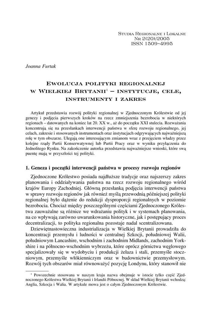 Ewolucja polityki regionalnej w Wielkiej Brytanii