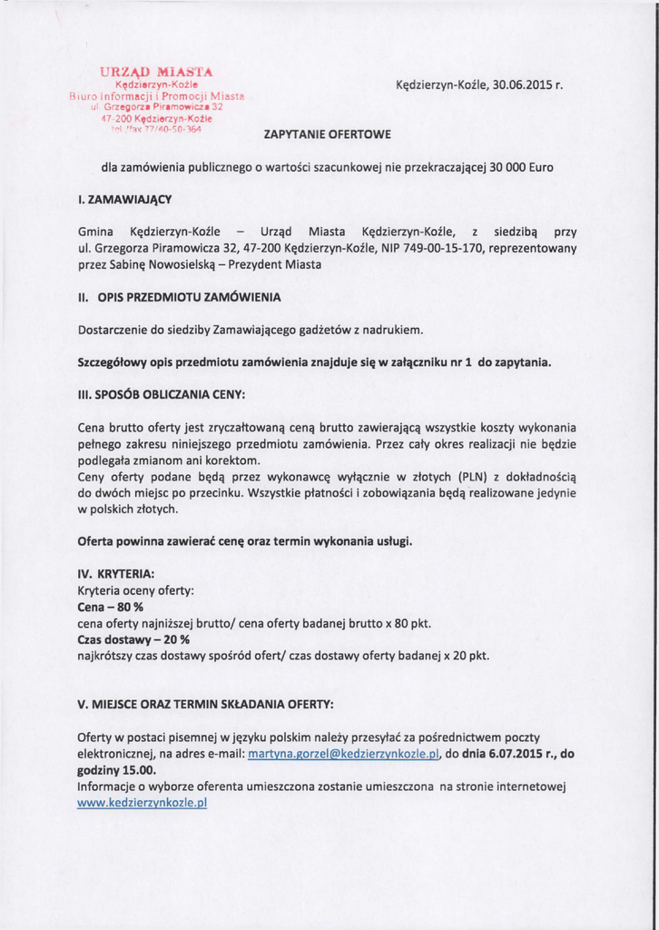 2015.06.30-zapytanie ofertowe-Dostarczenie do - Kędzierzyn