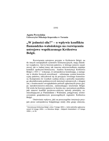 [155] Agata Pyrzyńska Uniwersytet Mikołaja Kopernika w Toruniu „W jedności siła?” – o wpływie konfliktu flamandzko-walońskiego na rozwiązania ustrojowe współczesnego Królestwa Belgii. Rozwiązania ustrojowe przyjęte w Królestwie Belgii, na tle innych europejskich systemów konstytucyjnych, mają charakter wyjątkowy. Jest to bowiem państwo, w którego ustawie zasadniczej, jak w żadnej innej, tak znaczne odzwierciedlenie znajduje kontekst społeczno-historyczny. Analiza Konstytucji Królestwa Belgii z 1831 r.1 wskazuje, iż ustrojodawca konstruując, a następnie w drodze licznych nowelizacji – reformując system konstytucyjny państwa, zdecydował się na przyjęcie swoistego konsensusu. Kompromis ów wynikał z jednej strony z potrzeby racjonalnego ukształtowania podstawowych instytucji ustrojowych, z drugiej zaś, z konieczności uwzględnienia potrzeb zgłaszanych przez grupy narodowościowo-etniczne, zamieszkujące terytorium Belgii. Od wielu lat bowiem państwo to boryka się z poważnym problem, jaki stanowi konflikt językowo-etniczny narosły pomiędzy zamieszkującymi je Flamandami i Walonami, potęgowany zróżnicowaniem gospodarczym poszczególnych regionów Królestwa Belgii. Omówienie wpływu, jaki na poszczególne instytucje przyjęte przez ustrojodawcę belgijskiego miały obie grupy etniczne, 1 Konstytucja Królestwa Belgii z dnia 7 lutego 1831 r.; tekst jednolity ogłoszony został 14 lutego 1994 r. w Moniteur Belge – Belgisch Staatsblad z 17 lutego 1994 r., nr 35. [156] poprzedzić należy ich krótką charakterystyką oraz uwagami dotyczącymi podłoża zaistniałego konfliktu. Flamandowie, zamieszkujący głównie w północnej części kraju, stanowią grupę pochodzenia germańskiego. Warto dodać, iż obecnie szacuje się, że ludność flamandzka przeważa w strukturze etnicznej społeczeństwa belgijskiego, oscylując w granicach 58% mieszkańców tego kraju2. Powszechnie używanym przez Flamandów językiem, co wynika z tradycji historycznej, jest język niderlandzki, niekiedy zwany także flamandzkim3. Grupę tę cechują przy tym silne tendencje nacjonalistyczne4, co sine dubio nie pozostaje bez wpływu na umacnianie konfliktu flamandzko – walońskiego. Walonowie natomiast, stanowiący ok. 31% ogółu społeczeństwa, to ludność pochodzenia romańskiego, skupiona przede wszystkim w południowych i środkowych prowincjach kraju. Dominującym wśród nich językiem jest francuski, czym przez szereg lat grupa ta uzasadniała swoją wyższość nad północnymi, niderlandzkojęzycznymi sąsiadami. Używany przez Walonów język francuski zyskał bowiem status języka urzędowego już w pierwotnym brzmieniu Konstytucji z 1831 r. Proces zrównywania z nim języka niderlandzkiego rozpoczęto dopiero w 1898 r., kiedy to król Leopold II, na skutek silnych aspiracji Flamandów o równouprawnienie językowe, uznał flamandzki za drugi język oficjalnie obowiązujący5. 2 Internetowa Encyklopedia PWN, www.encyklopedia.pwn.pl (dostęp: 30.09.13 r.), s.v. Belgia. Ludność. 3 Dane statystyczne wskazują, iż 60% mieszkańców współczesnej Belgii włada językiem niderlandzkim; zob. A. Limanowska, Historia konfliktu flamandzko – walońskiego, http://www.twojaeuropa.pl/1697/flandria-walonia-historia-kon fliktu (dostęp: 30.09.13 r.). 4 W. Skrzydło, Konstytucja Belgii, Warszawa 1996, s. 4. 5 A. Pacześniak, Belgia podzielona. Pęka fundament,. Warto jednak zauważyć, iż proces zrównywania pozycji języków w Belgii osiągnął apogeum dopiero w drodze ustawy z 8 listopada 1962 r., na mocy której dokonano podziału kraju na 4 obszary językowe. [157] Warto zauważyć, że dla Walonów posługiwanie się językiem francuskim było oznaką oczywistej dla nich wyższości. Skoro bowiem rodzina królewska oraz elity kraju przez szereg lat używały języka francuskiego, mieszkańcy południowej części Belgii, przejawiający z zresztą silne tendencje separatystyczne6, nie widzieli potrzeby przyswajania zupełnie obcego i marginalizowanego na południu, języka Flamandów. Taki stan rzeczy, polegający na zauważalnym zróżnicowaniu etniczno-językowym, stanowi wynik splotu wydarzeń, które przez wieki kształtowały historię współczesnej Belgii. Powstanie niepodległego Królestwa Belgii w 1830 r. poprzedzone było bowiem wielokrotnymi zmianami w zakresie zwierzchnictwa nad tym terytorium. W czasach starożytnych tereny, o których mowa, zamieszkiwane głównie przez plemiona germańskie, zostały podbite przez Rzymian, co zapoczątkowało długotrwały proces romanizacji zamieszkałej tam ludności. Po traktacie z Verdun (843 r.), zachodnia część Niderlandów znalazła się pod panowaniem Francji, wschodnia zaś – Niemiec. Wydaje się, iż to właśnie od tego momentu zaczynają kształtować się na terytorium późniejszej Belgii antagonizmy kulturowo-językowe, pogłębiane kolejnymi zmianami w zakresie zwierzchnictwa nad obszarem Niderlandów. Zauważyć bowiem należy, iż omawiany obszar znajdował się kolejno pod panowaniem hiszpańskim, austriackim, francuskim, a po upadku Napoleona I – włączony został do Królestwa Niderlandów7. Choć w wyniku powstania z 1830 r. udało się odsunąć od władzy holenderską dynastię Orańską i rozpocząć kształtowanie nowego, niepodległego państwa belgijskiego pod egidą dynastii Sasko-Koburskiej8, rozdźwięk pomiędzy obiema częściami terytorium, zamieszkiwanymi przez zupełnie odmienne kulturowo grupy etniczne pozostał, a nawet – rzec można – z biegiem czasu nabierał na sile. 6 W. Skrzydło, op. cit., s. 4. E. Zieliński, Parlament Belgii, Warszawa 1994, s. 5. 8 A. Głowacki, System konstytucyjny Belgii, Warszawa 1997, s. 6. 7 [158] Dodać także należy, jak sygnalizowano powyżej, iż podział państwa na francuskojęzyczną Flandrię i niderlandzkojęzyczną Walonię, potęgowany był (a także jest nadal) również przez różnice ekonomiczne pomiędzy tymi 