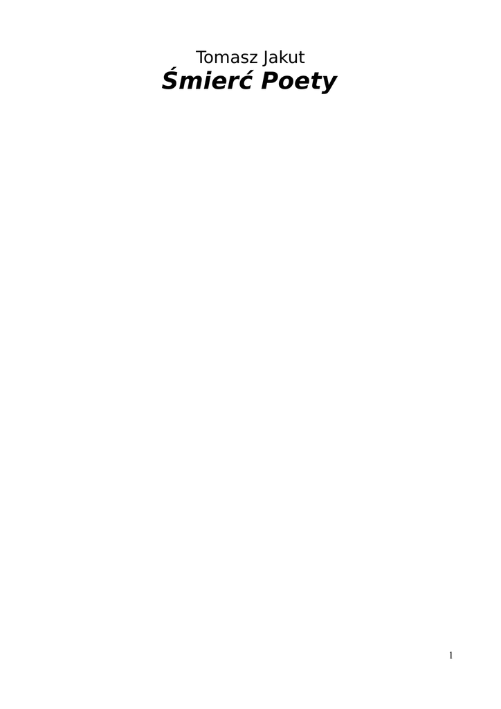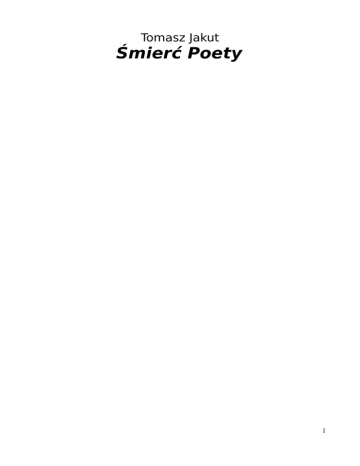 Tomasz Jakut Śmierć Poety 1 Scena I Hall wielkiego dworku szlacheckiego – LEKARZ, GOSPODARZ, GOSPODYNI GOSPODARZ Całe szczęście, że pan raczył zjawić się tak szybko! LEKARZ Z chorym aż tak źle? GOSPODYNI Jest gorzej niźli przypuszczaliśmy! Chory praktycznie nie odzyskuje przytomności, majaczy przeróżne głupoty w gorączce. LEKARZ Hmmm... To bardzo niedobrze... Niech pani mnie do niego zaprowadzi! Scena II Hall – GOSPODARZ, UCZEŃ, UCZENNICA GOSPODARZ A co wy tu robicie? UCZEŃ Myślisz, że jesteśmy ślepi lub niespełna rozumu? Wydaje ci się, że można nas bez żadnych problemów oszukiwać? UCZENNICA Twoje wysiłki, aby zatuszować chorobę naszego mistrza od samego początku były żałosne. Nie rozumiem co skłoniło cię do tego, by podszyć się pod niego i napisać do nas list! GOSPODARZ Jaki list? O czym wy mówicie? UCZEŃ O tym bezwartościowym świstku papieru, który napisałeś na starej maszynie do pisania, włożyłeś do koperty, kupiłeś znaczek i wysłałeś do nas. Nie jesteśmy tak tępi, żeby nie odróżnić twojego stylu pisania od stylu naszego mistrza. UCZENNICA Myślisz, że udałoby ci się trzymać nas od tego wszystkiego z dala, aż do jego śmierci? Bardzo by to odpowiadało twoim planom: nikt nie przeszkodziłby ci w przejęciu jego majątku! GOSPODARZ Na Boga, o czym ty mówisz? Jakie przejęcie majątku? na stronie A to cholery, jak oni się w tym połapali? Przecież mój plan był tak perfekcyjny, tak genialny! UCZENNICA Wiesz co cię wydało? „Drodzy uczniowie” - nigdy się do nas tak nie zwracał. Jak już coś sobie umyślisz, to umyśl sobie to dobrze. „Moi mali przyjaciele” - gdybyś tak napisał i nie używał tego dziwnego homerycko-biblijnego stylu nie byłoby nas tu dziś. Na szczęście jednak popełniłeś te głupie błędy. A teraz prowadź nas do jego łóżka! Scena III Pokój chorego. W rogu stolik z leżącą na nim książką, nad drzwiami krzyż, pośrodku łóżko, w którym leży chory POETA, obok krzesło, na którym siedzi SZATAN. SZATAN Coś cię zmogło, mój mały przyjacielu... POETA 2 Ach, jakaż dzika radość wyziera z twego głosu... Ciesz się, ciesz...póki możesz. W końcu legniesz pod jarzmem Słowa – ono cię zgniecie! Nic nie jest w stanie przeciwstawić się Jego potędze, nawet ty. SZATAN Myślisz, że Słowo jest wszechmocne? Roi ci się, że dzięki niemu zdołasz wszystko naprawić! Lecz czyż to nie słowo cię zniszczyło, Poeto? Ja też go używam – potężna to broń. Wierz mi: ludzie bardziej zawierzą memu słowu niźli twojemu! POETA Nadejdą czasy, gdy człowiek odwróci się od ciebie i wyruszy na nową krucjatę. Piekło opustoszeje, gdyż wezwiesz wszystkie swe siły, by rzucić je przeciwko najsłabszej istocie we wszechświecie. Rozpocznie się wielka bitwa, na samym krańcu świata, w miejscu zetknięcia się nieba i ziemi. I zostaniesz strącony w otchłań bez dna – ty i twoi pobratymcy. Tak to zakończy się odwieczna walka Dobra ze Złem. SZATAN Pycha i próżność dyktują ci te wzniosłe słowa. Uważasz się za potężniejszego ode mnie, a zmogłem cię i w końcu zabiję. Zamiast marzyć o nowej, wielkiej krucjacie, zawalcz raczej o własną duszę. POETA Cóż mam uczynić? SZATAN Podpisz ze mną pakt, a nie ruszę twych następców. POETA Ha! Myślisz, żem głupi? Następcy moi silniejsi będą ode mnie. Jakże więc ich pokonasz, skoro mnie przez te wszystkie lata zmóc nie mogłeś? Oni będą mocni mocą Słowa – mego Słowa. Starłeś się już raz z Jego potęgą i rozbiłeś się o mury fortecy mego umysłu. SZATAN na stronie Do dzisiaj noszę blizny na rogach i kuleję. Wielką potęgą on włada, lecz ja mam pod sobą moc potężniejszą. głośno Nie pokonałeś mnie, nie odniosłem nawet uszczerbku na zdrowiu. Przy mej sile jesteś nikim – marnym prochem, takim jak reszta ludzkości! POETA Powiadasz, że nikim jestem... Gdybym nikim był, nie fatygowałbyś się tu osobiście. Mej śmierci może przecież doglądać jakikolwiek diabeł. Ty jednak przybyłeś tu upewnić się czy wraz ze mną umrze me dzieło. Wiedz zatem, że tak się nie stanie! SZATAN Wielu mi to w twarz mówiło. Sokrates, Platon, Arystoteles... Wszyscy oni odeszli już dawno i nikt nie kontynuował ich dzieła, wręcz przeciwnie – obalano je! POETA Mówisz o ludziach sprawiedliwych, a o swych nie wspominasz. Nietzsche także żył i wybuchł – i cóż z tego? Szkody naprawiono, trupy pochowano i jego nauka odeszła w niepamięć. Czy zamiast niej nie miał odejść powiew starożytności: chrześcijaństwo? Scena IV Pokój chorego. GOSPODYNI, LEKARZ, POETA GOSPODYNI O, oto i chory! LEKARZ Nie wygląda jakoś tragicznie... 3 POETA Dlaczegóż ktoś żyw ma wyglądać tragicznie? Śmierć nawet tak nie wygląda. Jest w gruncie rzeczy komiczna. Jak bowiem inaczej można opisać wygląd kogoś, kto zakłada długi czarny płaszcz, a w ręce trzyma starą, tępą kosę? GOSPODYNI Widzi pan? Majaczy, biedaczyna... LEKARZ Czy wie pan gdzie pan jest? POETA Wiem, wiem! Wielkie to nieszczęście dla mnie, że wiem! LEKARZ A czy mógłby pan się ze mną podzielić tą wiedzą? POETA Ależ oczywiście! Niech pan rozejrzy się wokół: cóż pan widzi? Bo ja widzę wszechogarniającą materię, kłębiącą się i zbitą, skręcającą się w otaczającą nas rzeczywistość. Pan jest materią, ja jestem materią i ta mikroskopijna drobinka kurzu na czubku pańskiego nosa również jest materią. To jednak tylko część prawdy. Widzę także energię. Oplata materię i daje jej moc tworzenia. Gdyby nie ona, nie żylibyśmy – co najwyżej egzystowalibyśmy! GOSPODYNI Przecież to to samo! POETA Ależ nie! Bo czy roślina żyje? Nie, gdyż nie rusza się, nie tworzy społeczności, nie myśli, jednakże mimo to istnieje i istnieje bardziej niźli pierwszy lepszy kamień napotkany na drodze. Egzystencja jest pojęciem o wiele bardziej szerokim niźli życie. Ma odniesien
