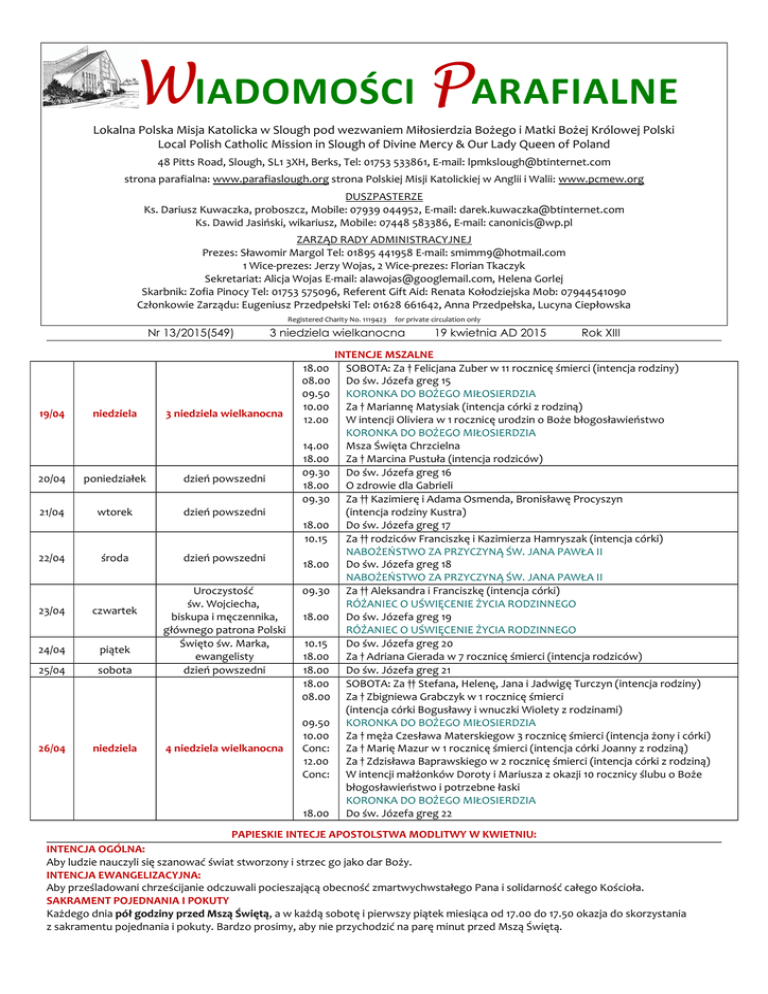 Wiadomości Parafialne - Lokalna Polska Misja Katolicka w Slough