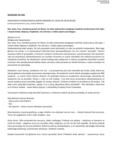 przypadku Szymańskiego. Zanim wykonano badania, które wykluczyły jego udział w gwałcie, a kobieta,