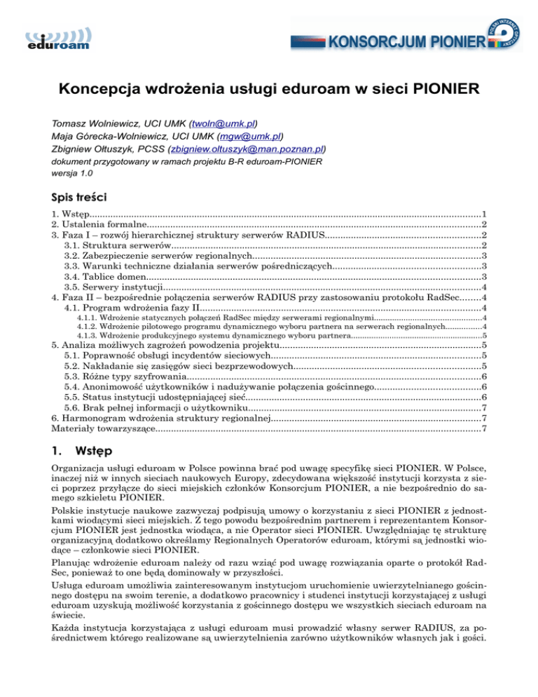Koncepcja wdrożenia usługi eduroam w sieci PIONIER