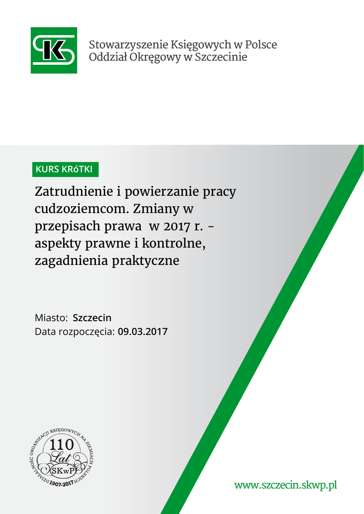 Stowarzyszenie Księgowych w Polsce Oddział Okręgowy w Szczecinie KURS KRóTKI Zatrudnienie i powierzanie pracy cudzoziemcom. Zmiany w przepisach prawa w 2017 r. aspekty prawne i kontrolne, zagadnienia praktyczne Miasto: Szczecin Data rozpoczęcia: 09.03.2017 www.szczecin.skwp.pl Stowarzyszenie Księgowych w Polsce Oddział Okręgowy w Szczecinie Zapytaj o szkolenie tel. 91 433 98 32 fax. 91 488 19 29 [email protected] poniedziałek: w godzinach 8:00 - 16:30 wtorek - piątek: w godzinach 8:00 - 16:00 Nie znalazłeś oferty dla siebie? poinformuj nas jakiego szkolenia szukasz: [email protected] Zatrudnienie i powierzanie pracy cudzoziemcom. Zmiany w przepisach prawa w 2017 r. - aspekty prawne i kontrolne, zagadnienia praktyczne Prowadząca Agnieszka Dobrodziej z Bydgoszczy - radca prawny Program szkolenia Na szkoleniu zostaną omówione następujące zagadnienia: - Przepisy prawa regulujące zagadnienia zatrudniania i powierzania pracy cudzoziemcom. • omówienie podstawowych przepisów prawa w zakresie dopuszczania cudzoziemców do rynku pracy, wymogi materialne - Procedury prawne i administracyjne dotyczące legalizacji pobytu cudzoziemców na terenie RP. Wymagane dokumenty - nowe formularze. Aspekty praktyczne. Nowe problemy. • formalności związane ze złożeniem wniosku - w jakim urzędzie składamy wniosek (właściwość miejscowa), treść wniosku, koszty • wymogi formalne - KPA • uzupełnianie braków formalnych • obowiązki meldunkowe • czasookresy procedury administracyjnej • środki odwoławcze - odmowne rozpatrzenie sprawy - Procedury prawne i administracyjne dotyczące legalizacji pracy cudzoziemców na terenie RP. Wymagane dokumenty - nowe formularze. Aspekty praktyczne. Obowiązki podmiotu powierzającego pracę. Nowe problemy. • formalności związane ze złożeniem wniosków - w jakim urzędzie składany jest wniosek (właściwość miejscowa), treść wniosku, koszty Stowarzyszenie Księgowych w Polsce Oddział Okręgowy w Szczecinie al. Papieża Jana Pawła II nr 11 70-415 Szczecin tel. 91 433 98 32 fax. 91 488 19 29 Nr konta 80 1500 1722 1217 2010 4781 0000 [email protected] www.szczecin.skwp.pl 2/4 Stowarzyszenie Księgowych w Polsce Oddział Okręgowy w Szczecinie Zapytaj o szkolenie tel. 91 433 98 32 fax. 91 488 19 29 [email protected] poniedziałek: w godzinach 8:00 - 16:30 wtorek - piątek: w godzinach 8:00 - 16:00 Nie znalazłeś oferty dla siebie? poinformuj nas jakiego szkolenia szukasz: [email protected] • wymogi formalne - KPA • uzupełnianie braków formalnych • czasookresy procedury administracyjnej • środki odwoławcze - odmowa udzielenia zezwolenia - Rodzaje tytułów pobytowych. • rodzaje wiz. Na jakiej wizie można wykonywać pracę? Co się dzieje jak wiza wygaśnie? Liczenie terminów wynikających z wizy. • karty pobytu - rodzaje, kto może się ubiegać o jej wydanie. • cudzoziemiec w procedurze - „stempel w paszporcie” - Rodzaje zezwoleń na pracę na terenie RP, po zmianach w 2017r. Uchylenie przepisów dotyczących uproszczonej procedury oświadczeniowej. • zezwolenia na pracę sezonową - nowość! (zakres podmiotowy, przedmiotowy, procedury) • zezwolenia na pracę krótkoterminową -nowość! (zakres podmiotowy, przedmiotowy, procedury) • zezwolenia na pracę - typy zezwoleń • jednolite zezwolenia na pobyt i pracę • modyfikacje zezwoleń na pracę, przedłużenie • zakres podmiotowy i przedmiotowy, ramy czasowe zezwoleń • nowe obowiązki wynikające z implementacji Dyrektywy Parlamentu Europejskiego i Rady 2014/36/UE z 26.02.2014 r. - Formy zatrudnienia cudzoziemców na terenie RP i poza terytorium RP. • zatrudnienie pracownicze - kodeksowe umowy o pracę, rodzaje umów o pracę, nowelizacja umów o pracę. Czy cudzoziemiec może mieć zawartą umowę o pracę na czas nieokreślony? • zatrudnienie cywilnoprawne - rodzaje umów cywilnych, przepisy kodeksu cywilnego • delegowanie cudzoziemców do pracy za granicę. Procedury poświadczania formularzy A. Aspekty praktyczne • wynagrodzenie cudzoziemca. Zmiany przepisów • stawka minimalnego wynagrodzenia za pracę w 2017 r. - zagadnienia ustawowe - Cudzoziemiec zwolniony z obowiązku posiadania zezwolenia na pracę. • podział ze względu na kraj pochodzenia cudzoziemca: obywatel UE i EFTA, obywatele państw trzecich • uprawnienie cudzoziemca do pracy bez zezwolenia - zakres podmiotowy • zwolnienia z obowiązku ubiegania się o zezwolenie na pracę - Obowiązki pracodawców w zakresie prowadzenia dokumentacji pracowniczej cudzoziemca. • wymogi prawa pracy - rodzaje dokumentów, tłumaczenie ich na język zrozumiały dla cudzoziemca • wymogi wynikające z ustawy o skutkach powierzania wykonywania pracy cudzoziemcom przebywającym wbrew przepisom na terytorium RP - Uprawnienia inspektora pracy PIP w zakresie kontroli cudzoziemców. • zakres podmiotowy i przedmiotowy kontroli • środki prawne • stosowane sankcje wobec podmiotu powierzającego pracę i cudzoziemca odpowiedzialność wykroczeniowa podmiotu powierzającego pracę, rodzaje kar i ich wysokość • powiadomienia do Wojewody i Straży Granicznej • konsekwencje prawne powiadomień w stosunku do podmiotu powierzającego pracę i Stowarzyszenie Księgowych w Polsce Oddział Okręgowy w Szczecinie al. Papieża Jana Pawła II nr 11 70-415 Szczecin tel. 91 433 98 32 fax. 91 488 19 29 Nr konta 80 1500 1722 1217 2010 4781 0000 [email protected] www.szczecin.skwp.pl 3/4 Stowarzyszenie Księgowych w Polsce Oddział Okręgowy w Szczecinie Zapytaj o szkolenie tel. 91 433 98 32 fax. 91 488 19 29 [email protected] poniedziałek: w godzinach 8:00 - 16:30 wtorek - piątek: w godzinach 8:00 - 16:00 Nie znalazłeś oferty dla siebie? poinformuj nas jakiego szkolenia szukasz: [email protected] cudzoziemca - decyzje administracyjne W ramach szkolenia zapewniamy: - materiały szkoleniowe, - przerwy kawowe, - obiad, - zaświadczenie o ukończeniu kursu. Opłata Opłatę za szkolen