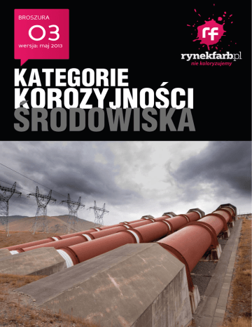 BROSZURA 03 wersja: maj 2013 KATEGORIE KOROZYJNOŚCI ŚRODOWISKA 2 Kategorie korozyjności środowiska Przy doborze powłoki antykorozyjnej trzeba liczyć się z tym, w jakim środowisku będzie ona funkcjonowała. Inne bowiem muszą być właściwości i grubości pokrycia w bardzo agresywnym środowisku morskim czy przemysłowym, a inne – w suchych, czystych wnętrzach budynków, w których zagrożenia korozją praktycznie nie ma. Klasyfikacja środowisk korozyjnych, dzięki której można łatwo dobrać odpowiednią farbę, zamieszczona została w normie PN-EN ISO 12944-2. Drogą eksperymentalną, umieszczając elementy z metali testowych – stali węglowej, cynku, miedzi, aluminium – w różnych środowiskach i porównując szybkość postępowania w nich korozji, naukowcy dokonali podziału środowisk ze względu na kategorie korozyjności. We wspomnianej normie pojawia się pięć kategorii korozyjności atmosfery (przy czym jedna składa się z dwóch podkategorii). Pierwsza z nich, C1 (bardzo mała), odpowiada środowiskom, w których korozja jest niemal niezauważalna – dla stali niskowęglowej ubytek masy spowodowany korozją wynosi w tym wypadku poniżej 10 g/m2 na rok, a dla cynku – mniej niż 0,7 g/m2! Takie warunki obserwuje się wyłącznie we wnętrzach budynków – klimatyzowanych, z czystą atmosferą. Kategoria C2 (mała) odpowiada środowiskom zewnętrznym w małym stopniu zanieczyszczonym, o suchym klimacie – są to głównie tereny wiejskie – zaś jeśli chodzi o wnętrza, to są to przeważnie nieogrzewane magazyny i hale, gdzie może wystąpić kondensacja wilgoci. W kategorię C3 (średnią) wpisują się obszary miejskie i przemysłowe o średnim zanieczyszczeniu SO2 lub obszary nadbrzeżne o małym zasoleniu, natomiast jeśli chodzi o wnętrza – pomieszczenia produkcyjne o dużej wilgotności i zanieczyszczeniu, takie jak zakłady przemysłu spożywczego. Kategoria C4 (duża) to już obszary nadbrzeżne o średnim zasoleniu oraz rejony przemysłowe, zaś spośród wnętrz – zakłady chemiczne, stocznie, a także pływalnie. Jeśli natomiast chodzi o kategorię C5, to norma dzieli ją na dwie podkategorie – C5-I (bardzo duża przemysłowa), która obejmuje wilgotne, wyjątkowo agresywne korozyjnie środowiska przemysłowe, oraz C5-M (bardzo duża morska) czyli obszary nadbrzeżne o dużym zasoleniu lub oddalone od brzegu, na pełnym morzu. W przypadku wnętrz kategoria C5 obejmuje wnętrza o ciągłej kondensacji i dużym skażeniu atmosfery. Dla tej kategorii ubytek masy w ciągu roku wynosić może nawet powyżej 1 kg/m2! C1 (bardzo mała) wnętrza ogrzewane z czystą atmosferą C4 (duża) C2 (mała) C3 (średnia) obszar o niskim zanieczyszczeniu i suchym klimacie (np. tereny wiejskie) nieogrzewane magazyny i hale C5 (bardzo duża) rejony przemysłowe, zakłady obszary nadbrzeżne chemiczne, stocznie, o średnim pływalnie zasoleniu C5 - I obszary miejskie pomieszczenia i przemysłowe produkcyjne o średnim o wysokim zanieczyszczeniu, zanieczyszczeniu tereny i wigotności nadbrzeżne (np. browary) o małym zasoleniu agresywne środowiska przemysłowe C5 - M obszary na pełnym morzu lub nadbrzeżne o dużym zasoleniu wnętrza o ciągłej kondensacji i dużym skażeniu atmosfery Jest to jednak, rzecz jasna, dość ogólna klasyfikacja. W rzeczywistości spotyka się na ogół bardziej złożone warunki. Mogą to być specyficzne atmosfery (w zakładach chemicznych), dodatkowe narażenia termiczne, mechaniczne lub biologiczne, a niekiedy element, któremu ma być zapewniona ochrona, bywa na stałe zanurzony w związku chemicznym. W takich wypadkach ocena korozyjności środowiska jest bardziej orientacyjna. Dla wody i gruntu wyróżniamy trzy kategorie korozyjności pracy w zanurzeniu – Im1 – woda słodka (a więc kategoria ta dotyczy różnego rodzaju instalacji rzecznych, także elektrowni wodnych), Im2 – woda morska lub lekko zasolona (porty, mola, konstrukcje na morzu) oraz Im3 – grunt (podziemne zbiorniki lub rurociągi). W praktyce, dobierając systemy antykorozyjne opieramy się na normie PN-EN ISO 12944-2. Każda kategoria korozyjności środowiska ma tam osobną tabelę, w której dobiera się grubości i ilość warstw odpowiednie dla używanej farby.