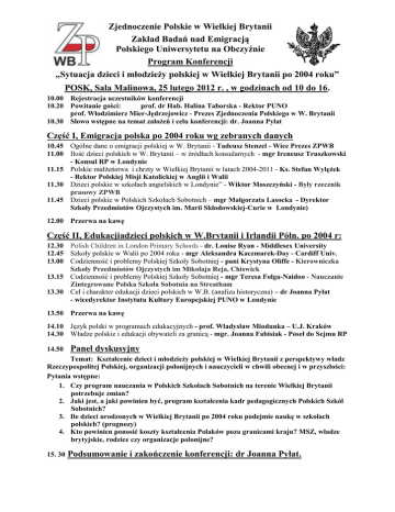 Program konferencji - Zjednoczenie Polskie w Wielkiej Brytanii