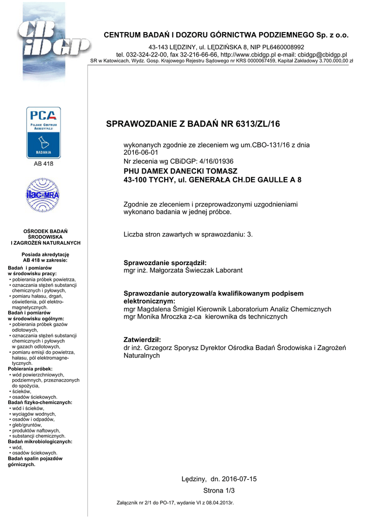 SPRAWOZDANIE Z BADAŃ NR 6313/ZL/16