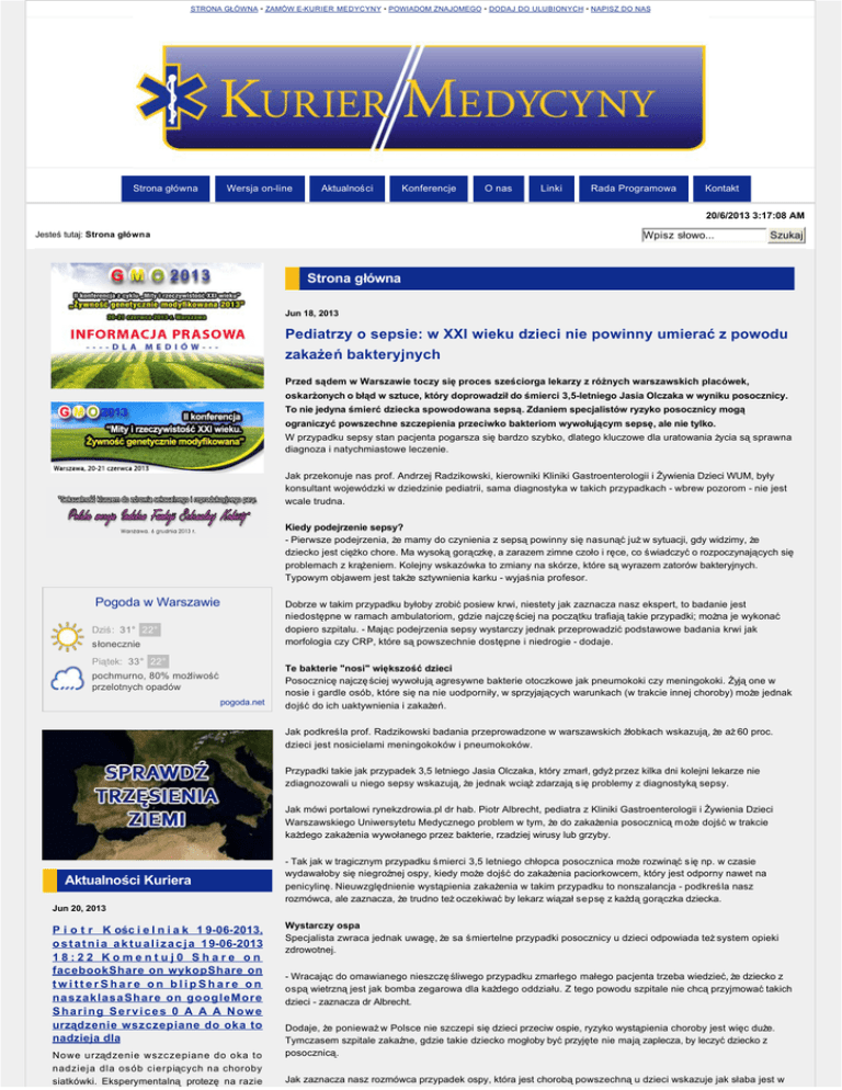 Pediatrzy o sepsie[ Kurier Medycyny 18.06.2013 ]
