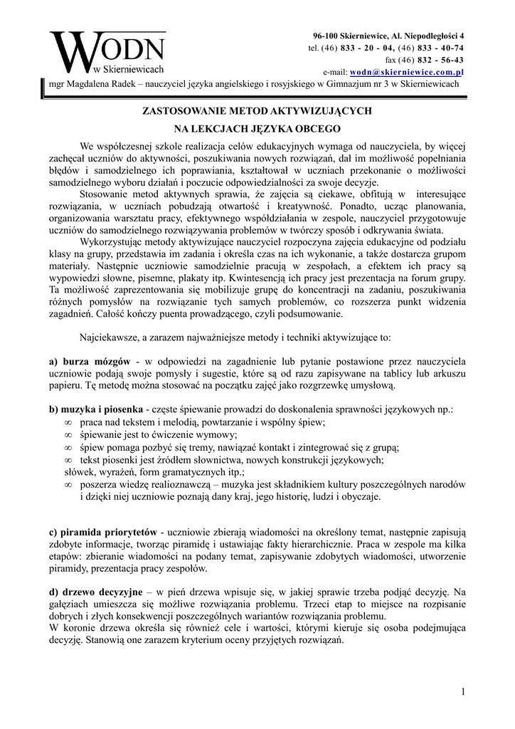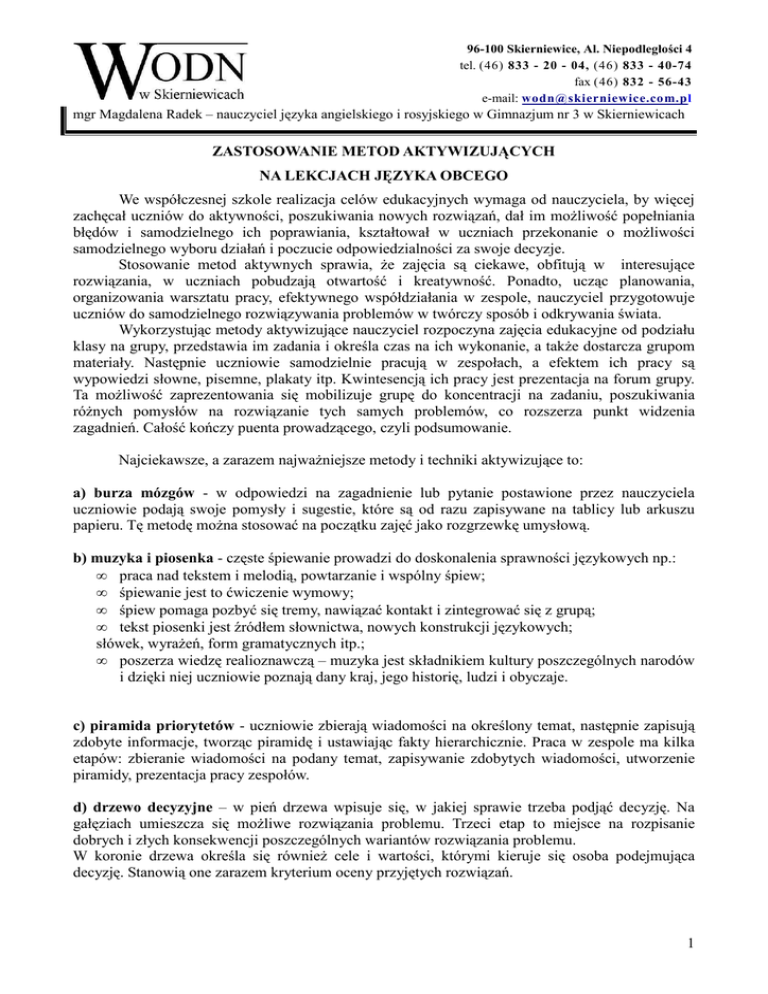 1 ZASTOSOWANIE METOD AKTYWIZUJĄCYCH NA LEKCJACH