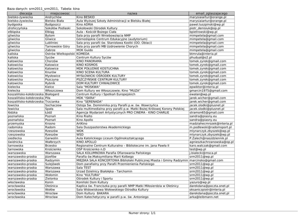 Baza danych: srm2011_srm2011, Tabela: kina diecezja