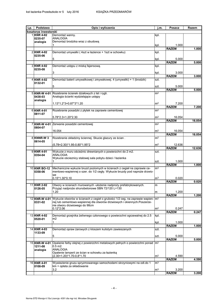 kst łazienka Przedszkole nr 5 luty 2016 KSIĄŻKA PRZEDMIARÓW