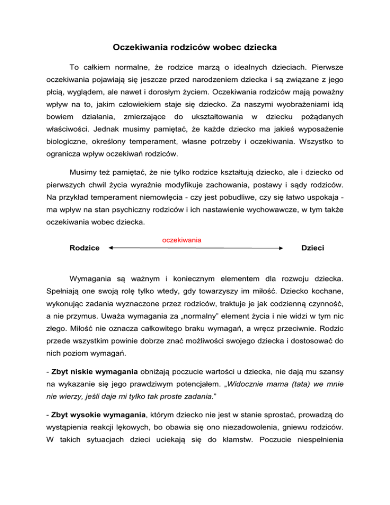 Oczekiwania rodziców wobec dziecka
