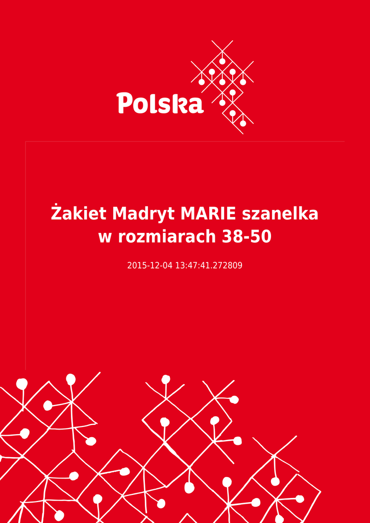 Żakiet Madryt MARIE szanelka w rozmiarach 38-50 2015-12-04 13:47:41.272809 2 Dieses Angebot gilt nicht Handelsinformationen darstellen Adres instytucji/firmy ogłaszającej ofertę STUDIO MARIE ŁOŃSKA MARIA 87-100 TORUŃ . TURYSTYCZNA 89 . Poland Ansprechpartner Krzysztof Łoński [email protected] Tel: 566489408 www.marie.com.pl Beschreibung der Bestellung Żakiet Madryt to najnowsza propozycja z kolekcji MARIE. Tkanina bardzo miła w dotyku. Żakiet idealny do noszenia na co dzień, do pracy i na wizytę. Nieskazitelny szanelkowy krój i doskonałe odszycie... Skład tkaniny: poliwiskoza Produkt polski, wyprodukowano w Toruniu Fizelina i wkład odzieżowy: oryginalne niemieckie Na podszewce Możliwość prania w pralce z programem 'delikatne' lub 'pranie ręczne' Projekt i wykonanie: Studio Mody MARIE Szyjemy zadowolenie klientek od 1987r. CPV ● Kleidung, Fußbekleidung, Gepäckartikel und Zubehör Zubehör 3 marie-4.jpg Art des Angebotes Verkauf Schlusstermin für den Eingang der Angebote 01.04.2016 Gültig ab 04.12.2015 Geäst Odzież i obuwie Der Minimalwert des Auftrags 1.00 Der Käufer im Ausland NO 4