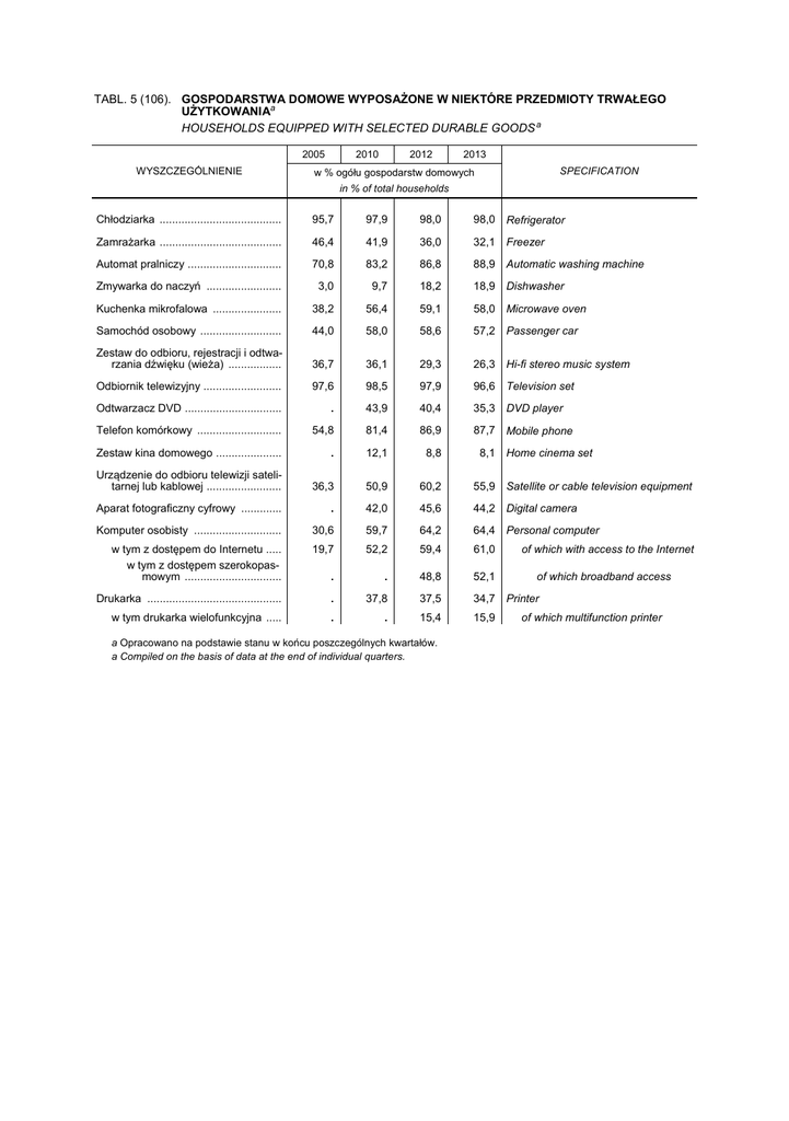 TABL. 5 (106). GOSPODARSTWA DOMOWE WYPOSAŻONE W