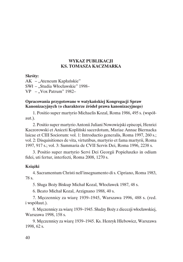 40 Wykaz publikacji ks. Tomasza kaczmarka