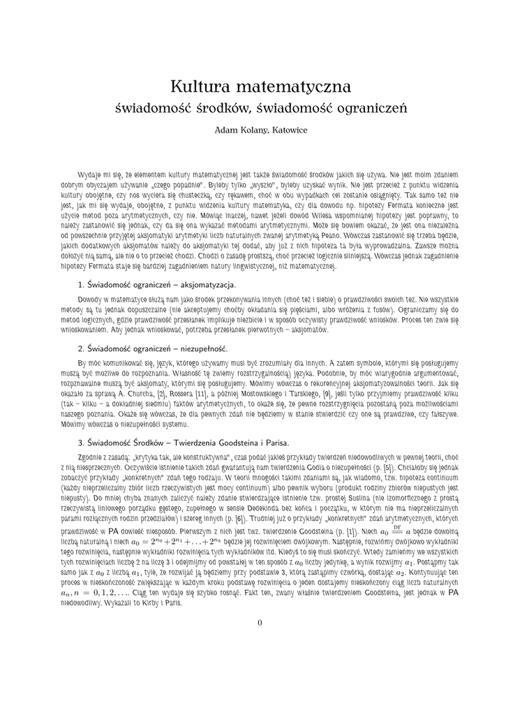 Wydaje mi się, że elementem kultury matematycznej jest także świadomość środków jakich się używa. Nie jest moim zdaniem