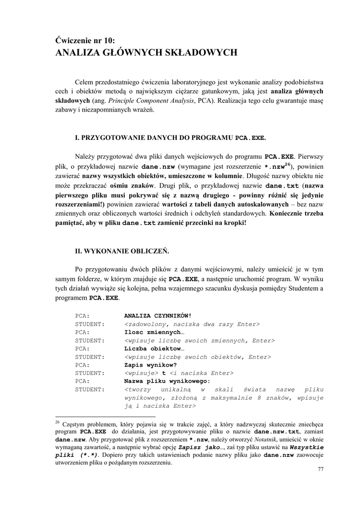 Należy przygotować dwa pliki danych wejściowych do programu PCA.EXE. Pierwszy