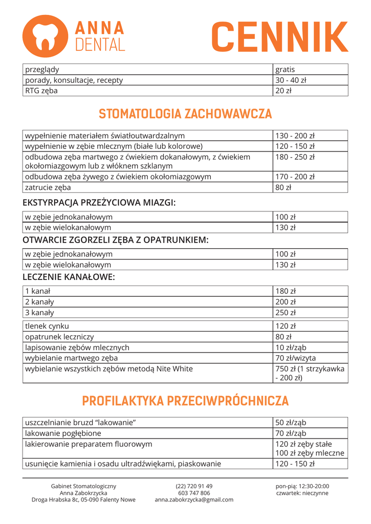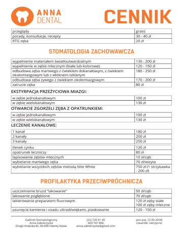 cennik - Gabinet Stomatologiczny Anna Zabokrzycka