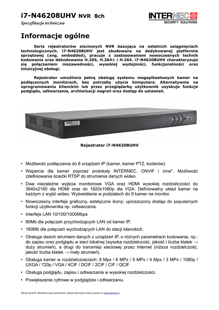 i7-N46208UHV NVR 8ch Informacje ogólne