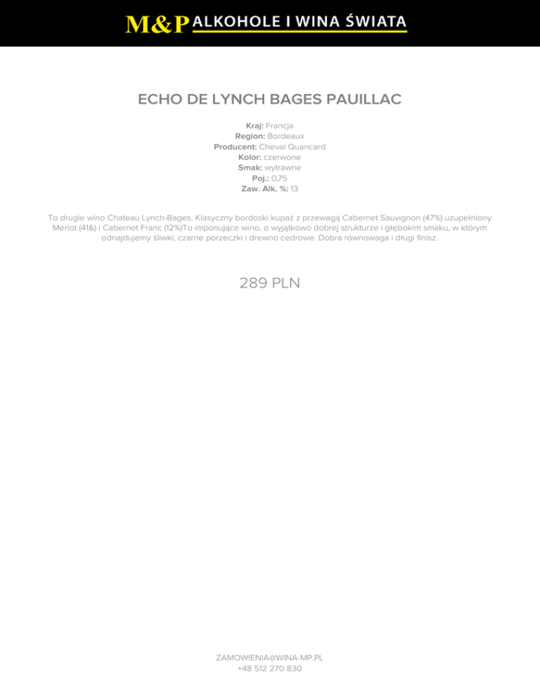 ECHO DE LYNCH BAGES PAUILLAC 289 PLN