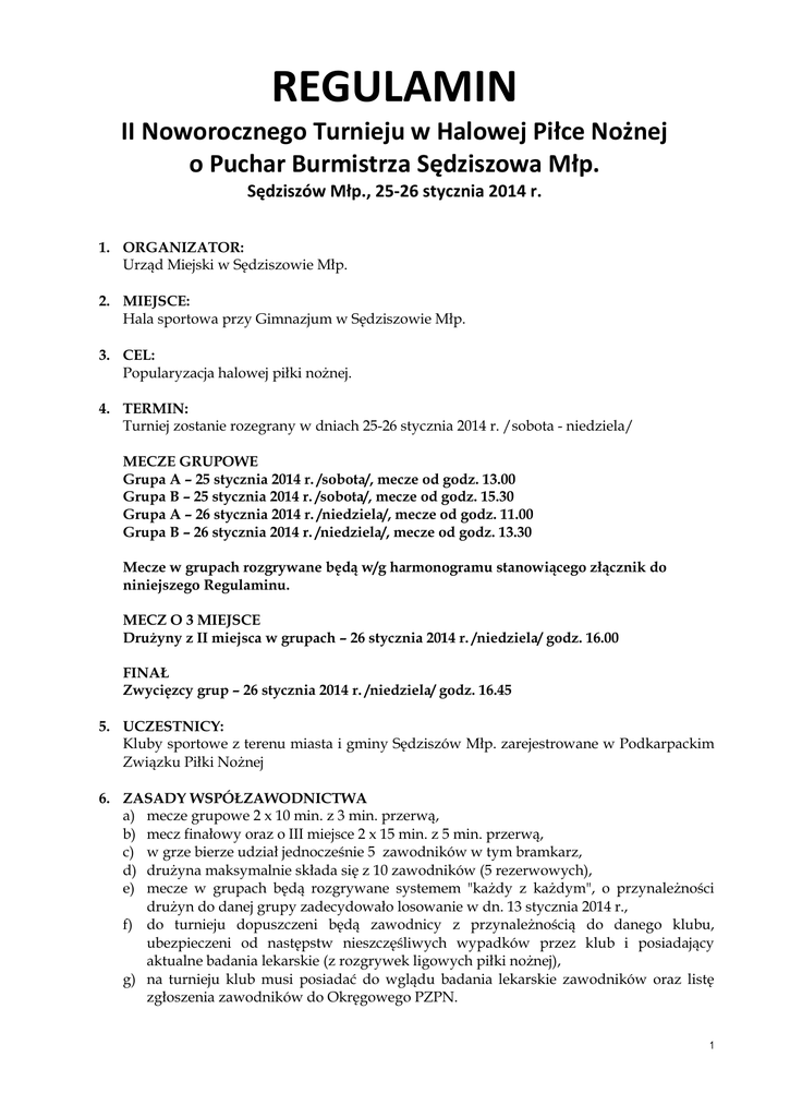 REGULAMIN - Sędziszów Młp.