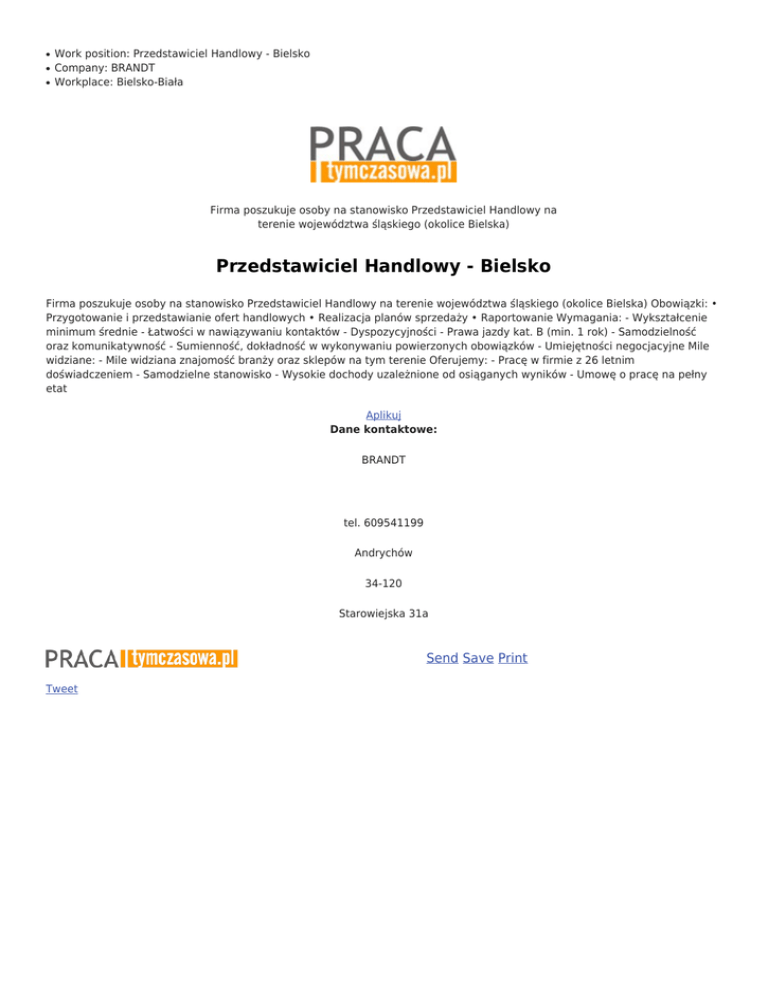 Praca-tymczasowa.pl - Przedstawiciel Handlowy