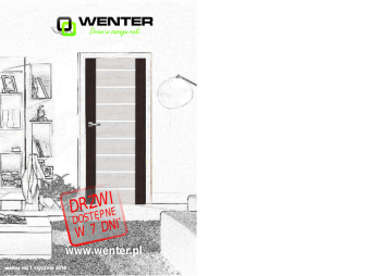I W Z R D STĘPNE DO * I N D 7 W www.wenter.pl PRIMA Seria A Cena: 449,00 z³ netto 552,27 z³ brutto 06 13 PRIMA Seria B 00 2 Cena: 449,00 z³ netto 552,27 z³ brutto 03 08 11 12 00 01 02 03 03 08 11 12 00 01 02 03 www.wenter.pl WENTER drzwi 04 04 www.wenter.pl 3 PRIMA Seria B AL Cena: 559,00 z³ netto 687,57 z³ brutto 04 00 PRIMA Seria C AL 02 4 Cena: 559,00 z³ netto 687,57 z³ brutto 03 08 11 12 00 01 02 03 03 04 05 06 00 01 02 03 www.wenter.pl WENTER drzwi 04 04 www.wenter.pl 5 PRIMA Seria C Cena: 449,00 z³ netto 552,27 z³ brutto 05 03 PRIMA Seria D 00 6 01 02 03 04 www.wenter.pl 00 WENTER drzwi Cena: 449,00 z³ netto 552,27 z³ brutto 01 02 03 04 www.wenter.pl 7 PRIMA Seria E Cena: 449,00 z³ netto 552,27 z³ brutto 03 07 PRIMA Seria F 00 8 01 02 03 04 www.wenter.pl 05 WENTER drzwi 06 00 Cena: 449,00 z³ netto 552,27 z³ brutto 01 02 www.wenter.pl 9 PRIMA Seria F AL Cena: 559,00 z³ netto 687,57 z³ brutto 02 00 PRIMA Seria G 01 10 02 03 00 Cena: 449,00 z³ netto PRIMA Seria I 552,27 z³ brutto 01 www.wenter.pl 02 WENTER drzwi 03 00 Cena: 449,00 z³ netto 552,27 z³ brutto 01 03 www.wenter.pl 11 PRIMA Seria K Cena: 349,00 z³ netto 429,27 z³ brutto 05 04 SUPER CENA 00 12 01 PRIMA Seria L 02 03 05 www.wenter.pl 00 WENTER drzwi Cena: 449,00 z³ netto 552,27 z³ brutto 01 02 03 04 www.wenter.pl 13 MIX 00: - bia³e ramiaki zewnêtrzne, czarne œrodkowe - mo¿liwoœæ wykonania wszystkich serii PRIMA - opcja bezp³atna MIX 01: - czarne ramiaki zewnêtrzne, bia³e œrodkowe - mo¿liwoœæ wykonania wszystkich serii PRIMA - opcja bezp³atna - panel w kolorze drzwi MIX 02: - w¹skie szyby w kolorze bia³ym lub czarny dostêpne w modelach A, G, H, I, M - dop³ata do ka¿dej w¹skiej szyby 10,00 z³ netto 12,30 z³ brutto PRIMA MIX 00 01 PRIMA Seria H 00 14 Cena: 449,00 z³ netto PRIMA Seria M 552,27 z³ brutto 01 02 03 04 www.wenter.pl 04 WENTER drzwi 04 03 Cena: 449,00 z³ netto 552,27 z³ brutto 03 02 01 00 www.wenter.pl 15 Oœcie¿nice regulowane i tunel regulowany System przesuwny naścienny Cena: 291 z³ netto 357,93 z³ brutto Komplet systemu przesuwnego (naœciennego) zawiera: prowadnicê (LEON SN 150, 180, 200) z okuciami, listwê dystansow¹ oraz maskownicê. W przypadku systemu montowanego na tunelu regulowanym w komplecie znajduj¹ siê 2 dodatkowe listwy dystansowe. Skrzyd³o drzwiowe bezprzylgowe o wymiarach: Drzwi pojedyncze: „60”, „70”, „80”, „90”. symbol A B C D S „60” 600 644 664 750 644 „70” 700 744 764 850 744 NS - system montowany bezpoœrednio na œcianê „80” „90” 800 900 844 944 864 964 950 1050 844 944 tunel regulowany ościeżnica regulowana NT - system montowany z u¿yciem tunelu regulowanego Cena jednej sztuki: 35,00 z³ netto 43,05 z³ brutto Drzwi dwuskrzydłowe uchwyty kwadratowe uchwyty owalne Cena: uchwyty okr¹g³e S2 S2W „120” „130” „140” „150” „160” „170” „180” 1278 1378 1478 1578 1678 1778 1878 1252 1352 1452 1552 1652 1752 1852 C C C C Cena netto Cena brutto MIN 75 95 120 140 160 180 200 220 240 260 280 MAX 95 115 140 160 180 200 220 240 260 280 300 MIN 62 82 107 127 147 167 187 207 227 247 267 MAX 82 102 127 147 167 187 207 227 247 267 287 225,00 z³ 230,00 z³ 234,00 z³ 239,00 z³ 252,00 z³ 263,00 z³ 274,00 z³ 285,00 z³ 295,00 z³ 299,00 z³ 318,00 z³ 276,75 z³ 282,90 z³ 287,82 z³ 293,97 z³ 309,96 z³ 323,49 z³ 337,02 z³ 350,55 z³ 362,85 z³ 367,77 z³ 391,14 z³ A 600 700 800 900 1000 Folia Cena: Ryfla Cena: kombinacja*Sc+Sb 644+644 744+644; 644+744 844+644; 744+744; 644+844 944+644; 844+744; 744+844; 644+944 944+744; 844+844; 744+944 944+844; 844+944 944+944 B C D E 624 644 680 750 724 744 780 850 824 844 880 950 924 944 980 1050 1024 1044 1080 1150 DOSTĘ * NI W7D OPASKA MASKUJ¥CA ÆWIERÆWA£EK 129 z³ netto 158,67 z³ brutto Folia Cena: Folia 85 z³ netto Cena: 104,55 z³ brutto 47 z³ netto 57,81 z³ brutto Cena: 32,00 z³ netto 39,36 z³ brutto 149,00 z³ netto 183,27 z³ brutto Konstrukcja: Ramiaki pionowe wykonane s¹ z p³yty MDF. Ramiaki poziome wykonane s¹ z wysokiej jakoœci MDF-u, ca³oœæ oklejona jest atrakcyjn¹ foli¹ polipropylenow¹ ARS-DECOR. Istnieje mo¿liwoœæ skrócenia skrzyd³a maksymalnie o 40 mm. Do skrzyde³ ramiakowych oferujemy oœcie¿nice sta³e soft, regulowane, opaski oraz æwieræwa³ki. Odcieñ skrzyde³ i oœcie¿nic ten sam. Kolor: Wenge, calvados, orzech, olcha, z³oty d¹b, jesion bielony, bia³y, tabacco ryfla, orzech ryfla, d¹b natural, d¹b czarny, wi¹z grey Okucia: 3 zawiasy czopowe, zamek na klucz, wc lub wk³adkê folia DECOR wenge 60 70 80 90 100 K¥TOWNIK ŻNICE OŚCIE ANE OW REGUL PNE + mo¿liwoœæ regulacji zwiêkszona o 2 cm wymiar w [mm] zgodnie z Polsk¹ norm¹ Drzwi jednoskrzydłowe OŒCIE¯NICA SOFT OŒCIE¯NICA REGULOWANA Folia drzwi 1-skrzyd³owe x 2 Symbol wymiaru lp. 1 2 3 4 5 6 7 8 9 10 11 z³oto patyna nikiel szczotkowany kombinacja* - mo¿liwe zestawienie szerokoœci skrzyde³ czynnych (Sc) i biernych (Sb) 16 Oœcie¿nica regulowana wykonana jest z p³yty drewnopochodnej MDF o wysokich parametrach. Od strony ekspozycyjnej oœcie¿nica pokryta jest w ca³oœci drewnopodobn¹ foli¹ dekoracyjn¹ DECOR. W celu wpasowania siê do odpowiedniej gruboœci muru oœcie¿nica posiada du¿y zakres regulacji od 75 mm do 300 mm, natomiast tunel posiada zakres regulacji od 62 mm do cavlados orzech olcha folia DECOR RYFLA folia DECOR 3D tabacco ryfla d¹b natural orzech ryfla z³oty d¹b jesion bielony d¹b czarny wi¹z grey bia³y 17 PODCIÆCIE WENTYLACYJ PODCIĘCIE wętylacyjne 18 www.wenter.pl WENTER drzwi www.wenter.pl 19