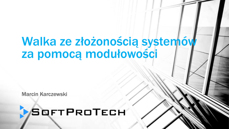 Walka ze złożonością systemów za pomocą modułowości Marcin Karczewski Cienki klient Lata 80-te Za mało mocy po stronie klienta Lata 90-te + Problemy z zarządzaniem grubym klientem vs Gruby Klient Lata 90-te Komputery PC przyspieszają 2000 + Bardziej bogate UI http://ste.india.com/sites/default/files/2015/01/10/312168-table-tennis700.gif Wniosek #1 Uczmy się Delphi – za jakiś czas wróci do łask http://www.ibm.com/developerworks/data/library/techarticle/dm-0312swart1/figure5.jpg Wniosek #2 Wypracować / stosować Best Practices http://blogs.mulesoft.org/api-best-practices-wrap-up/ SOLID • Single responsibility principle (Zasada jednej odpowiedzialności) • Open/closed principle (Zasada otwarte-zamknięte) • Liskov substitution principle (Zasada podstawienia Liskov) • Interface segregation principle (Zasada segregacji interfejsów) • Dependency inversion principle (Zasada odwrócenia zależności) Architektura wtyczkowa / modułowa Moduł A Moduł D Funkcja A Usługa A Shell Powłoka Usługa B Funkcja B Moduł C Moduł C Moduł B http://slides.com/suevalov/backbone-js/embed Open/closed principle Open/closed principle Zestaw narzędzi (po stronie GUI) • Rejestracja i ładowanie modułów • „Wstrzykiwanie” widoków pomiędzy modułami • Komunikacja pomiędzy modułami Microsoft PRISM (WPF / Silverlight) • ASP.NET MVC (bardzo mało), • JavaScript (OOP), • Kendo UI Core, • RequireJS, • jQuery Rejestracja i ładowanie modułów Logo, nazwa systemu Belka menu (lista modułów) Funkcjonalności systemu / zawartość modułów Strony modułu A Potrafią tyle co Strona bazowa… … i jeszcze więcej (dziedziczenie) Strony modułu B Strona bazowa Wie jak zapytać o moduły i ich funkcje oraz jak je wyświetlić Shell / Powłoka Rejestrator modułu A Zna moduły „z imienia i nazwiska” Znają swoje funkcje / ekrany, wiedzą kiedy pokazać je użytkownikowi (uprawnienia) Rejestrator modułu B Rejestrator modułu Shell / Powłoka Strona bazowa Konkretna strona Rezultat • Możliwość rozszerzania systemu o nowe funkcje poprzez dodawanie niezależnych obiektów / klas / widoków, • Możliwość rozszerzenia rozwiązania o globalnie działające mechanizmy np.: • Mechanizm kontroli uprawnień, • Mechanizm „wstrzykiwania” widoków, • Itp. Użytkownik niezalogowany… Moduł A Moduł B Ekran z wybraną funkcjonalnością Po zalogowaniu… „Wstrzykiwanie” widoków pomiędzy modułami • W module administracji, w ekranie ze szczegółami pracownika chcemy zobaczyć listę klientów z modułu CRM, których opiekunem jest dana osoba, • W module sprzedaży, w ekranie z widokiem faktury chcemy zobaczyć listę okazji biznesowych zarejestrowanych w ostatnim czasie w module CRM, • Itp.. Logo, nazwa systemu Belka menu Funkcjonalność modułu A Gadżet modułu B Gadżet modułu C Obiekt wstrzykujący Shell / Powłoka Ten obiekt wie który widok, jak i gdzie wstrzyknąć Strona Widok Strona ma przypisany widok Gadżet wstrzykiwany Powłoka posiada listę widoków wstrzykiwanych we wszystkich modułach (dzięki rejestratorom modułów) Widok wstrzykiwany (np. gadżet) zawiera funkcje i kod przekazywane do innych modułów Widok zawiera kod HTML funkcjonalności oraz regiony Obiekt wstrzykujący Wstrzykiwany widok (gadżet) Rejestrator modułu Rejestracja widoków wstrzykiwanych Strona bazowa Wywołanie wstrzyknięcia widoków Rezultat Widok zarejestrowany w module administracyjnym Widok wstrzyknięty z modułu CRM Komunikacja między modułami (na poziomie UI) • Wyłączenie określonych funkcji w przypadku wykrycia niezapisanych zmian, • Odświeżanie danych w powiązanych gadżetach, • itp. Wzorzec: Obserwator / Publish-Subscribe PubSub.js Przekazuje komunikaty do obserwatorów Reaguje na komunikaty Widok obserwowany Widok obserwujący Powiadamia o swoich zmianach Widok powiadamiający o zmianach Publikacja zdarzenia Widok reagujący na zmiany Reakcja na zdarzenie Rezultat Niezapisana zmiana Blokada nawigacji Bibliografia • http://onstartups.com/tabid/3339/bid/161/The-Thin-Client-Thick-Client-Cycle.aspx • http://blog.8thlight.com/uncle-bob/2014/05/12/TheOpenClosedPrinciple.html • http://msdn.microsoft.com/en-us/library/gg406140.aspx • http://bumbu.ru/javascript-observer-publish-subscribe-pattern • http://sourcemaking.com/design_patterns/observer • https://developer.mozilla.org/pl/docs/Web/JavaScript/Wprowadzenie_do_program owania_obiektowego_w_jezyku_JavaScript