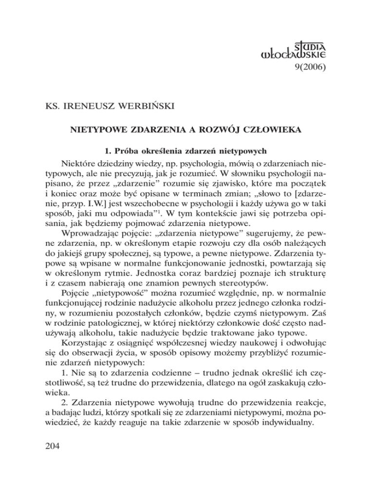 204 KS. IRENEUSZ WERBIŃSKI NIETYPOWE ZDARZENIA A