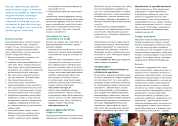 Warunki płacowe oraz zatrudnieniowe obowiązujące na duńskim rynku pracy zwykle są regulowane na gruncie umów zbiorowych zawieranych poprzez związki zawodowe i stowarzyszenia pracodawców. To jest właśnie przyczyna, dla której w Danii nie została ustalona płaca minimalna. Umowa o pracę Musisz zawsze podpisać ze swoim przyszłym pracodawcą umowę o pracę – niezależnie od tego, czy masz zamiar pracować na rzecz duńskiego, czy zagranicznego pracodawcy. Jako wymóg minimalny, umowa o pracę musi zawierać następujące informacje: 1. Nazwę i adres siedziby pracodawcy oraz nazwisko i adres pracownika. 2. Lokalizację miejsca zatrudnienia lub w przypadku braku stałego miejsca wykonywania pracy, miejsce, w którym praca jest wykonywana głównie lub oświadczenie, że pracownik jest zatrudniony w różnych lokalizacjach. 3. Opis wykonywanej pracy lub tytuł pracownika, jego stanowisko lub charakter pracy. 4. Datę nawiązania stosunku pracy. 5. Jeżeli umowa nie jest bezterminowa, przewidywaną długość okresu zatrudnienia. 6. Okres wypowiedzenia stosunku pracy, okres wymówienia ze strony pracodawcy i pracownika oraz wszelkie warunki z tym związane. 7. Uzgodnione wynagrodzenie, premie, płace dodatkowe np. dodatki za pracę nocną lub w niedogodnych godzinach, wynagrodzenie za godziny nadliczbowe itp. Ponadto musi być zawarta informacja dotycząca terminów realizacji wypłat. 8. Prawa pracownika do płatnych urlopów, składek emerytalnych, wszelkiego zakwaterowania i wyżywienia na terenie Danii, zasiłków chorobowych, zwrotu wydatków za użytkowanie samochodu prywatnego do celów służbowych itp. 9. Zwykły dzienny i tygodniowy wymiar godzin pracy. Zawsze należy zachować egzemplarz umowy o pracę/kontraktu zatrudnieniowego. W przypadku jakichkolwiek wątpliwości co do treści umowy o pracę, z pytaniami należy zwrócić się do pracodawcy. Umowa o pracę jest niezwykle ważna, ponieważ precyzuje Twoje prawa i obowiązki związane z zatrudnieniem. Pozwolenie na pracę i zezwolenie na pobyt Sprawdź, czy ubiegając się o pracę w Danii nie będziesz potrzebować pozwolenia na pracę i zezwolenia na pobyt. • Obywatele państw skandynawskich, aby móc podjąć pracę na terenie Danii nie potrzebują ani pozwolenia na pracę, ani zezwolenia na pobyt. • Obywatele państw członkowskich UE/EOG mogą swobodnie podróżować za pracą do Danii. Jeżeli pracujesz w Danii przez okres krótszy niż 3 miesiące, wówczas nie potrzebujesz pozwolenia na pracę oraz zezwolenia na pobyt, lecz musisz uzyskać kartę płatnika podatków. Jeżeli pracujesz w Danii przez okres dłuższy niż 3 miesiące, wówczas przy podejmowaniu pracy musisz uzyskać świadectwo rejestracji. Dalsze informacje są dostępne na stronie internetowej: www.statsforvaltningen.dk • Jeżeli nie jesteś obywatelem jednego z państw członkowskich UE/EOG, wówczas przed podjęciem pracy w Danii musisz złożyć wniosek i uzyskać pozwolenie na pracę oraz zezwolenie na pobyt. Dalsze informacje są dostępne na stronie internetowej: www.newtodenmark.dk. Zdrowie, Bezpieczeństwo i Higiena Pracy Wszyscy pracownicy zatrudnieni w Danii muszą stosować się do postanowień Duńskiej Ustawy o BHP (Danish Working Environment Act). Ustawa ta ma na celu zapobieganie wypadkom przy pracy oraz chorobom zawodowym. Do zakresu obowiązków pracodawcy należy zagwarantowanie bezpiecznych i zdrowych warunków pracy. Na pracodawcy ciąży szereg obowiązków, np. obowiązek zapewnienia pracownikowi instrukcji roboczych. Ty, jako pracownik, musisz współdziałać z pracodawcą na rzecz bezpieczeństwa i higieny pracy. Ponadto, masz obowiązek używać dostarczonych przez pracodawcę indywidualnych środkow ochronnych. Niektóre zawody i funkcje wymagają, abyś Ty i Twój pracodawca uzyskali świadectwo twoich kwalifikacji zawodowych: np. uprawnienia do prowadzenia wózka widłowego, uprawnienia dźwigowego, spawacza, uprawnienia do pracy przy azbeście. Dalsze informacje są dostępne na stronie internetowej: www.arbejdstilsynet.dk (w języku angielskim, polskim litewskim i niemieckim). Ubezpieczenie Ubezpieczenie odpowiedzialności cywilnej/przeciwwypadkowe Na pracodawcy ciąży prawny obowiązek zawarcia umowy ubezpieczenia następstw wypadków przy pracy, która chroni Cię w razie wypadku powstałego w czasie godzin pracy. Upewnij się, że Twój pracodawca dysponuje ważną umową ubezpieczenia. Jeśli potrzebujesz ubezpieczenia odpowiedzialności cywilnej i ubezpieczenia następstw nieszczęśliwych wypadków obowiązującego w czasie wolnym (poza godzinami pracy) powinieneś rozważyć wykupienie prywatnej polisy ubezpieczenia gospodarstwa domowego. Możesz być chroniony umową ubezpieczenia zawartą w kraju ojczystym – jeżeli umową taką nie dysponujesz, wówczas zalecamy ubezpieczenie się na terenie Danii. Ubezpieczenie na wypadek bezrobocia Jeżeli stracisz pracę w Danii, wówczas może przysługiwać Ci zasiłek dla bezrobotnych. W odróżnieniu od wielu innych krajów, ubezpieczenie na wypadek bezrobocia w Danii jest dobrowolne. Polisę ubezpieczeniową na wypadek bezrobocia można wykupić w funduszu ubezpieczenia przeciwko bezrobociu – znanym jako „a-kasse”. Wiele funduszy ubezpieczenia przeciwko bezrobociu jest afiliowanych przy związkach zawodowych. Związki zawodowe Masz prawo wstąpić do związku zawodowego. Związek zawodowy może Ci pomóc na wypadek sporu dotyczącego warunków pracy i płacy – lecz tylko wtedy, gdy jesteś ich członkiem (-nią). Większość osób pracujących w Danii jest członkami związków zawodowych. Istnieje wiele związków zawodowych spośród których możesz wybierać. To, do jakiego związku zawodowego wstąpisz, zależy od charakteru Twojej pracy. Podatki W większości przypadków podatki musisz płacić na terenie Danii, niezależnie od tego, czy pracujesz na rzecz pracodawcy duńskiego, zagranicznego, czy też agencji pracy tymczasowej. Bez