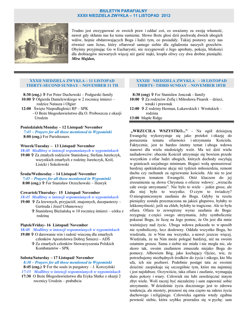 xxxii niedziela zwykła - St. Casimir`s Parish in Vancouver