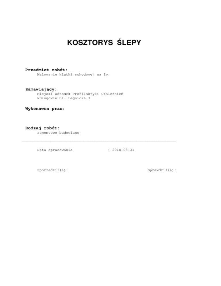 KOSZTORYS ŚLEPY