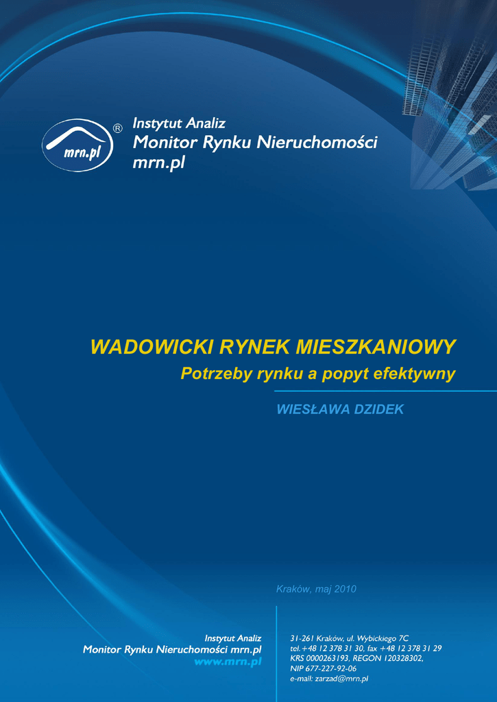 WADOWICKI RYNEK MIESZKANIOWY Potrzeby rynku a popyt efektywny WIESŁAWA DZIDEK Kraków, maj 2010 1. Ceny gruntów pod zabudowę mieszkaniową Wadowice Ceny działek w Wadowicach pod budownictwo mieszkaniowe jednorodzinne w roku 2009 wahały się od 25,00 147,00 zł/m² gruntu. Cena średnia wynosiła 68,00 zł/m² gruntu i była o prawie 10% niższa od średniej ceny w 2008 r. Pomimo niewielkiego spadku cen gruntów zakup działki w Wadowicach jest trudny z uwagi na znikomą podaż. Oferowane działki pod budownictwo mieszkaniowe jednorodzinne, których cena przekracza 150,00 zł/m² nie znajdują nabywców. Tereny podmiejskie Średnia cena gruntu w strefie podmiejskiej(w promieniu 5 km od granic miasta) wynosi 35,00 zł/m² i jest prawie o 60% niższa od ceny średniej uzyskiwanej w Wadowicach. Tak duża różnica cen gruntu, przy relatywnie dogodnej komunikacji i wysokich walorach rekreacyjnych terenów ,,za miastem’’, stanowią atrakcyjny substytut działki w mieście. Przeciętne ceny gruntów przeznaczonych pod zabudowę mieszkaniową w strefie podmiejskiej w 2009r. wzrosły o ok. 10% w stosunku do cen w 2008r. 2. Zasoby mieszkaniowe Zasoby mieszkaniowe miasta to ponad 6,6 tys. mieszkań o powierzchni użytkowej blisko 44 tys. metrów kwadratowych. Z obserwacji rynku wynika, że zaspokajanie potrzeb mieszkaniowych realizowane jest najczęściej poprzez budowę domu jednorodzinnego, rzadziej zakup lokalu mieszkalnego. Ilość wydanych pozwoleń na budowę na terenie powiatu wadowickiego Rok Budownictwo wielorodzinne Budownictwo jednorodzinne 2009 1 ( 24 lokali ) 484 ( 486 lokali ) 2008 4 ( 79 lokali ) 357 ( 364 lokali ) 2007 3 ( 73 lokale ) 385 ( 386 lokali ) 2006 2 ( 117 lokali ) 284 ( 285 lokali ) Źródło: Urząd Statystyczny w Krakowie W 2009r. w powiecie Wadowice wydano 484 pozwoleń na budowę w zakresie budownictwa jednorodzinnego i 1 pozwolenie na budowę budynku wielorodzinnego. W stosunku do roku 2008 ilość pozwoleń na budowę wzrosła o 35%. W tym samym czasie rozpoczęto budowę 154 lokali mieszkalnych ( 106 – domy jednorodzinne, 2 budynki wielorodzinne – 48 lokali ). 3. Rynek pierwotny W Wadowicach w roku 2009 sprzedano zaledwie 4 mieszkania w stanie deweloperskim. Mieszkania przy ulicy Krasińskiego, podobnie jak w latach ubiegłych, były jedyną ofertą w tym segmencie rynku. [m2] Nowe powierzchnie mieszkaniowe [m2] 1000 900 800 700 600 500 400 300 200 100 0 II półrocze 2006 2007 2008 2009 Źródło: Urząd Statystyczny w Krakowie Załamanie na rynku nieruchomości obserwowane w 2007 roku miało swoje odzwierciedlenie także na wadowickim rynku mieszkaniowym. O ile ceny mieszkań sprzedawanych w stanie deweloperskim w 2007 roku wzrosły o 18,23% w stosunku do roku 2006 to wzrost cen w roku 2008 w stosunku do 2007roku był nieznaczny i wyniósł zaledwie 1,08%. Z kolei w 2009r. średnia cena lokalu na rynku pierwotnym wzrosła w stosunku do roku 2008 o 17,3% i była na poziomie 4 032,00 zł/m². [zł/m2] Średnie ceny lokali na rynku pierwotnym w latach 2006 - 2009 4500 4000 3500 3000 2500 2000 1500 1000 500 0 II półrocze 2006 2007 2008 2009 Źródło: opracowanie własne na podstawie bazy mrn.pl 4. Rynek wtórny W Wadowicach w 2009r. sprzedano 44 nieruchomości lokalowe. W tym 40 lokali mieszkalnych i 4 lokale użytkowe. Rynek mieszkaniowy pierwotny to zaledwie 4 transakcje, pozostałe to rynek wtórny. Miniony rok przyniósł dynamiczny wzrost obrotów na wtórnym rynku mieszkaniowym. Wolumen obrotu w roku 2008 przekroczył 3 900 000,00 złotych i był o 3,2% wyższy od wolumenu obrotu w 2007, zaś w 2009 roku odnotowano wzrost obrotów na rynku mieszkaniowym o 46,4% w stosunku do 2008r. Wolumen obrotu w 2009r. wyniósł 5 793 900,00 zł. Wolumen obrotu na rynku wtórnym w latach 2006 - 2009 6 000 000 5 000 000 [zł] 4 000 000 3 000 000 2 000 000 1 000 000 0 II półrocze 2006 2007 2008 2009 Źródło: opracowanie własne na podstawie bazy mrn.pl Średnia cena lokalu mieszkalnego wynosiła 3 651,00 zł/m² i była wyższa od średniej ceny w 2008 r. o 9,1%. W obrocie dominowały lokale o powierzchni użytkowej od 40,00 – 55,00m². [zł/m2] Średnie ceny lokali na rynku wtórnym w latach 2006-2009 4 000 3 500 3 000 2 500 2 000 1 500 1 000 500 0 II półrocze 2006 2007 2008 2009 Źródło: opracowanie własne na podstawie bazy mrn.pl Podobnie jak w latach poprzednich w obrocie znalazły się głównie lokale mieszkalne położone w blokach z lat 60. i 70. ubiegłego stulecia. Największym powodzeniem cieszyły się lokale na osiedlu XX- lecia gdzie zawarto ponad połowę transakcji. Najtańsze lokale w Wadowicach sprzedano na os. Obrońców Westerplatte i na os. Kopernika gdzie średnie ceny były w przedziale od 3125,00 do 32414,00 zł/m². Najwyższe ceny osiągały lokale na osiedlu ,,Pod Skarpą’’ gdzie cena średnia wynosiła 3 7548,00 zł/m². Ceny mieszkań na os. XX- lecia i przy ul. Sienkiewicza były na poziomie średnim i wynosiły odpowiednio 3 685,00 zł/m² i 3 571,00 zł/m². W 2009 r. średnia cena ofertowa lokali na rynku wtórnym wynosiła 4 100,00 zł/m² i przekraczała średnią cenę płaconą za lokal w stanie deweloperskim prawie o 2%. W stosunku do roku 2008r. ceny ofertowe wzrosły średnio o 4%. Ponad połowa kupionych mieszkań była finansowana kredytem mieszkaniowym. Z opinii Pośredników wynika, że kupujący mimo posiadanych środków własnych chętnie korzystają z preferencyjnych kredytów. Lokalnym liderem wśród banków udzielających kredytów mieszkaniowych jest PKO BP S.A. i BGŻ. 5. Popyt na rynku lokalnym Popyt to pragnienie nabycia określonego dobra. Jeśli pragnienie to poparte jest posiadaniem odpowiedniego ekwiwalentu i może być zaspokojone dzięki realnej sile nabywczej ludności to wtedy mówimy o popycie efektywnym. Czynnikami rynkowymi stymulującymi popyt są głównie dochody ludności i cena towaru (dobra) oraz ceny substytutów i dóbr komplementarnych. Do istotnych czynników pozarynkowyc