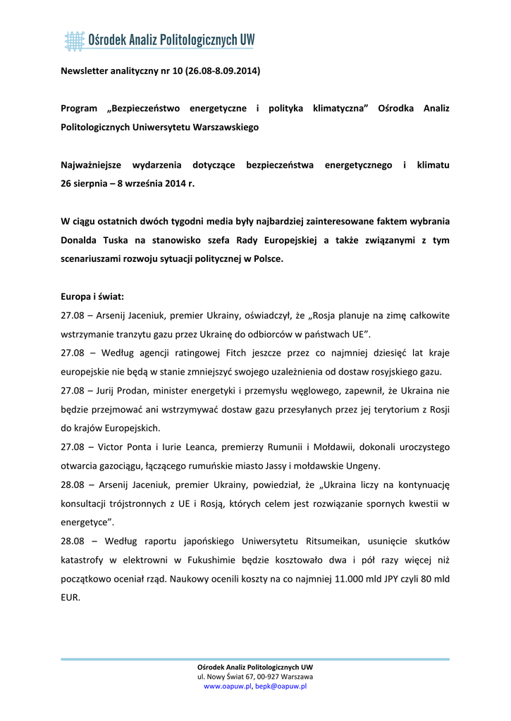 Newsletter analityczny nr 10 - Ośrodek Analiz Politologicznych UW