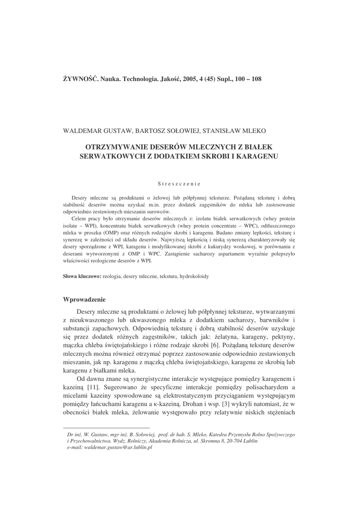otrzymywanie deserów mlecznych z białek serwatkowych z